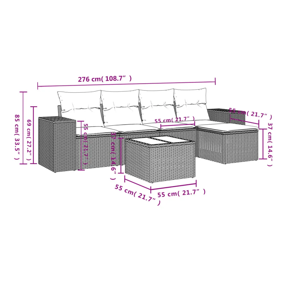 - Dimensions : 55 x 55 x 37 cm (L x l x H)