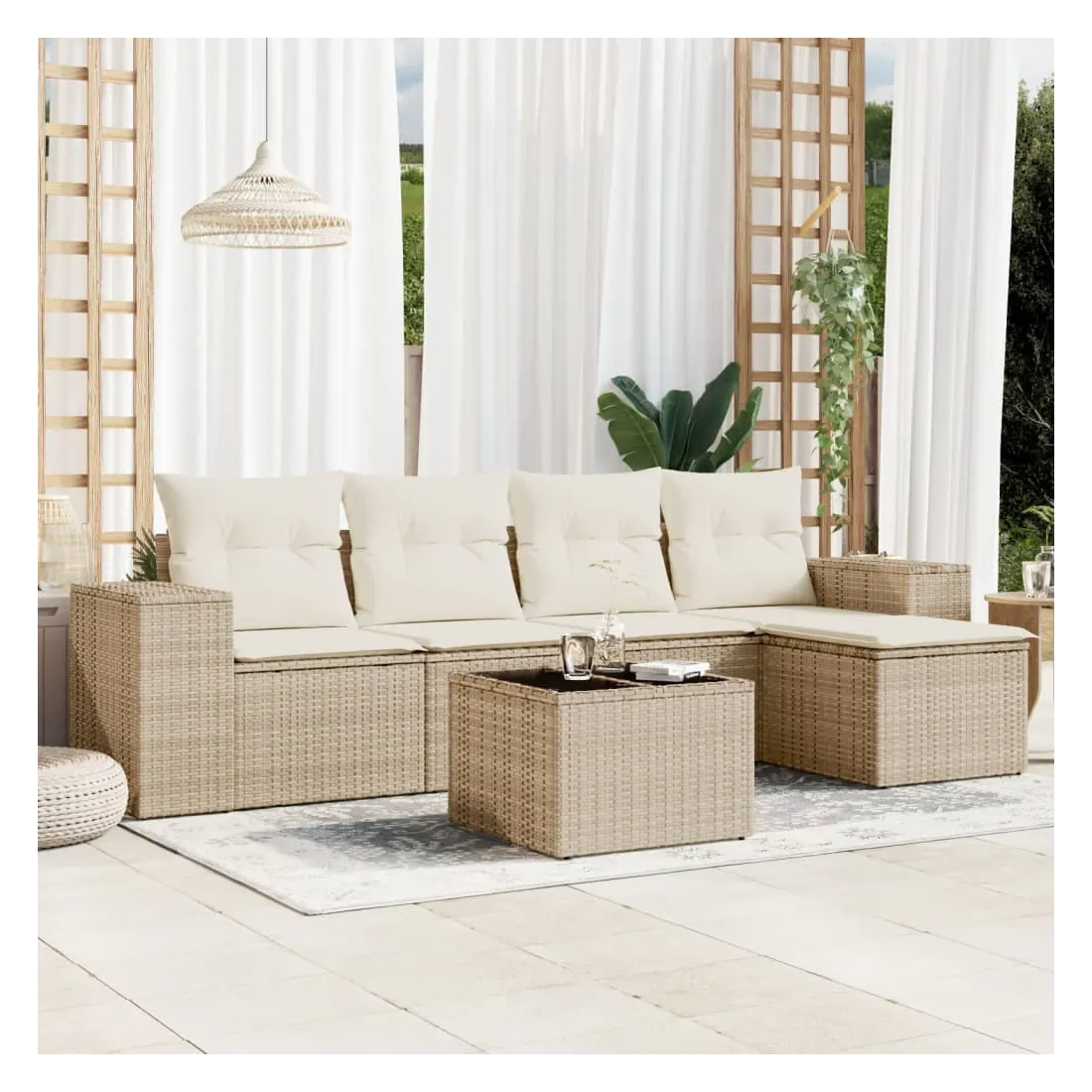 Cet ensemble de canapés de jardin est le complément parfait de votre arrière-cour, terrasse ou patio, offrant un espace confortable et accueillant pour discuter avec la famille et les amis ou simplement se détendre et profiter de l'extérieur. Matériau durable : la résine tressée, également connue sous le nom de poly rotin, est un matériau synthétique solide et nécessitant peu d'entretien qui ressemble au rotin naturel. Il est léger, facile à nettoyer et couramment utilisé pour les meubles d'extérieur en raison de sa durabilité et de ses propriétés de résistance aux intempéries.Dessus en verre : le dessus de la table d'extérieur est fabriqué en verre trempé solide et durable, ce qui le rend facile à nettoyer avec un chiffon humide et ajoute une touche d'élégance à votre espace extérieur.Expérience d'assise confortable : ce mobilier d'extérieur, doté de coussins épais, offre une expérience d'assise confortable.Housse amovible et lavable : ces coussins de siège sont dotés de housses amovibles pour un lavage et un entretien faciles.Conception modulaire : cet ensemble de meubles d'extérieur a une conception modulaire, ce qui le rend complètement flexible et facile à déplacer, afin que vous puissiez créer un agencement de meubles d'extérieur personnalisé. Bon à savoir :Pour que vos meubles d'extérieur restent beaux, nous vous recommandons de les protéger avec une housse imperméable.