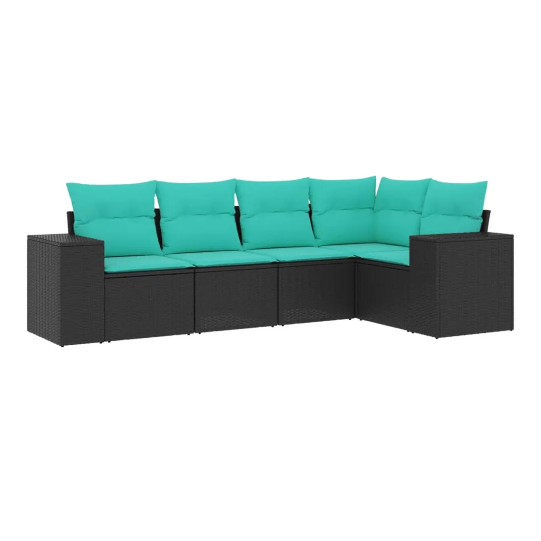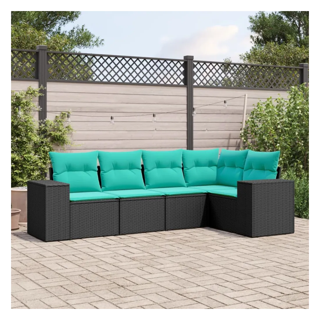 Salon de jardin 5 pcs avec coussins noir résine tressée