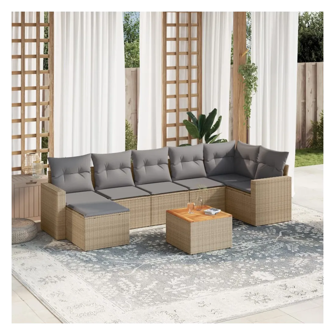 Cet ensemble de canapés de jardin est le complément parfait de votre arrière-cour, terrasse ou patio, offrant un espace confortable et accueillant pour discuter avec la famille et les amis ou simplement se détendre et profiter de l'extérieur. Matériau durable : la résine tressée, également connue sous le nom de poly rotin, est un matériau synthétique solide et nécessitant peu d'entretien qui ressemble au rotin naturel. Il est léger, facile à nettoyer et couramment utilisé pour les meubles d'extérieur en raison de sa durabilité et de ses propriétés de résistance aux intempéries.Dessus stable et facile à nettoyer : cette table de jardin a un dessus en bois d'acacia robuste, durable et facile à nettoyer avec un chiffon humide.Expérience d'assise confortable : ce mobilier d'extérieur, doté de coussins épais, offre une expérience d'assise confortable.Housse amovible et lavable : ces coussins de siège sont dotés de housses amovibles pour un lavage et un entretien faciles.Conception modulaire : cet ensemble de meubles d'extérieur a une conception modulaire, ce qui le rend complètement flexible et facile à déplacer, afin que vous puissiez créer un agencement de meubles d'extérieur personnalisé. Bon à savoir :Pour que vos meubles d'extérieur restent beaux, nous vous recommandons de les protéger avec une housse imperméable.
