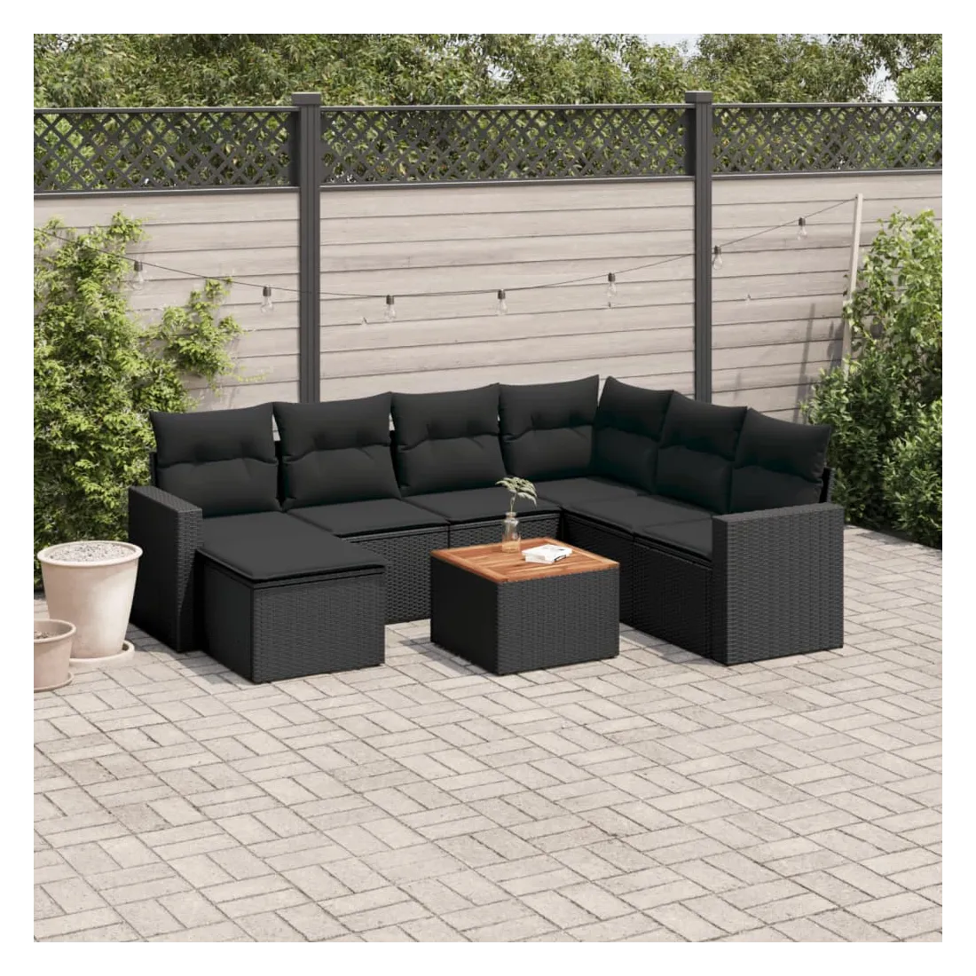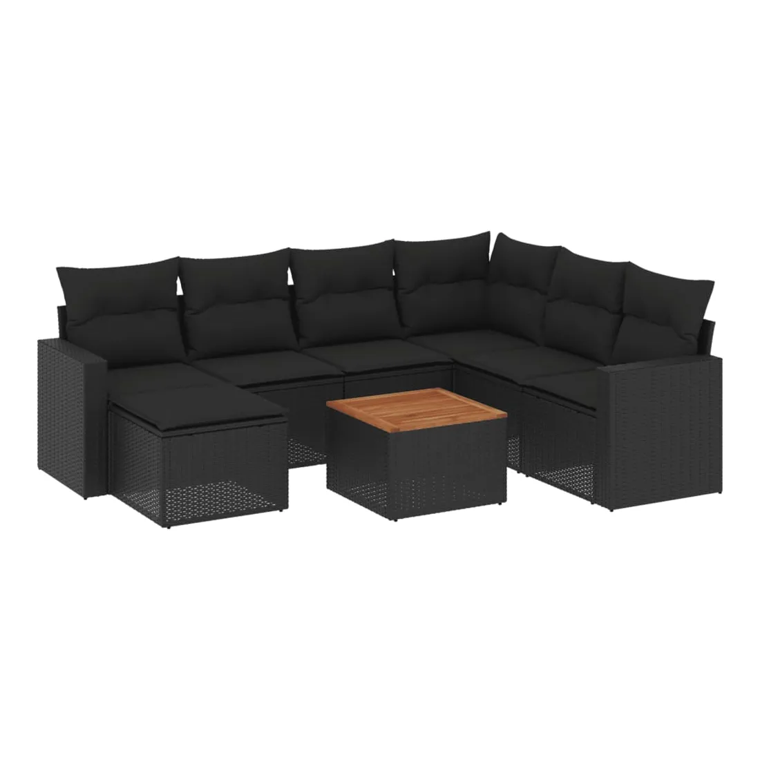 Salon de jardin 8 pcs avec coussins noir résine tressée