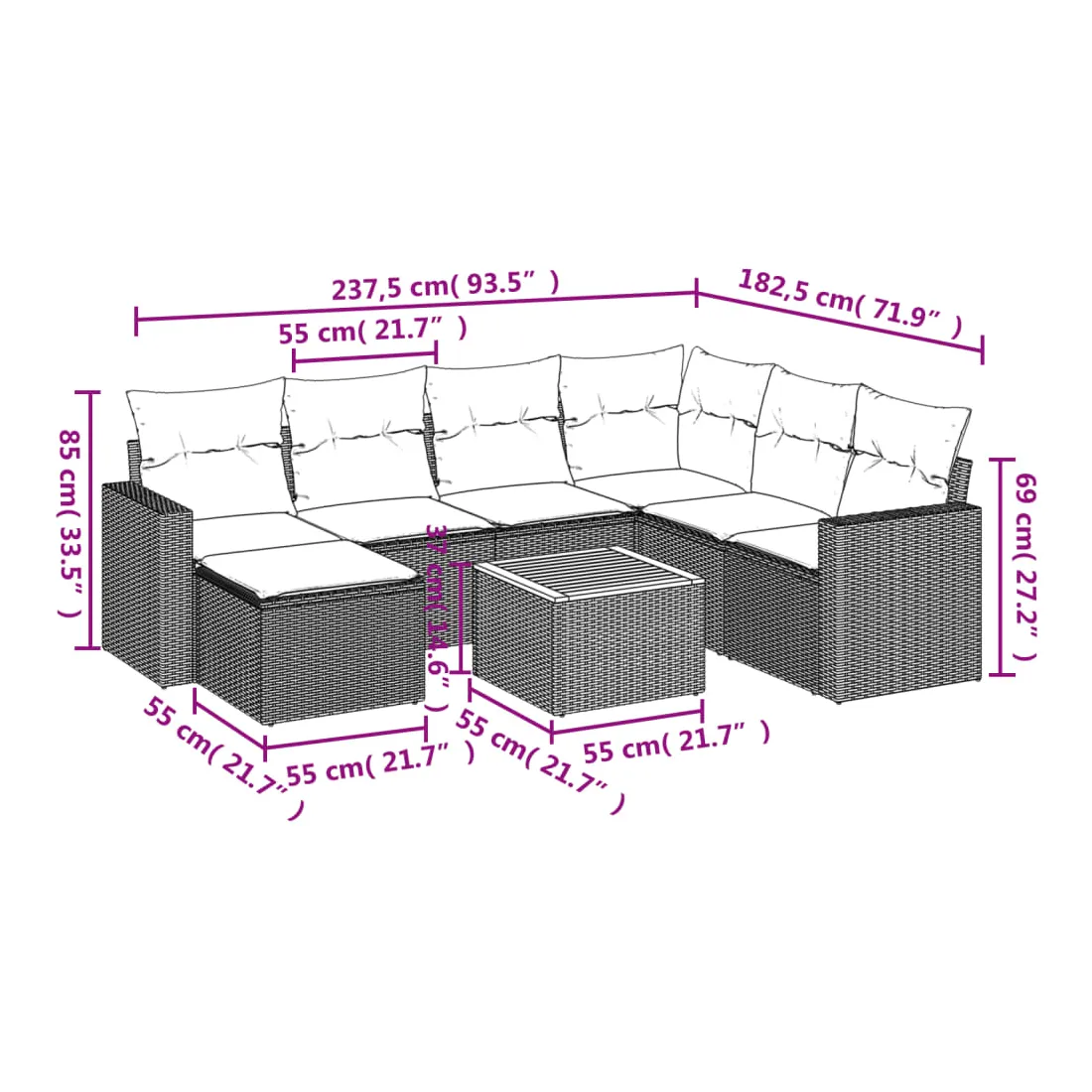 • Dimensions du coussin de siège : 55 x 55 x 3 cm (l x P x é)