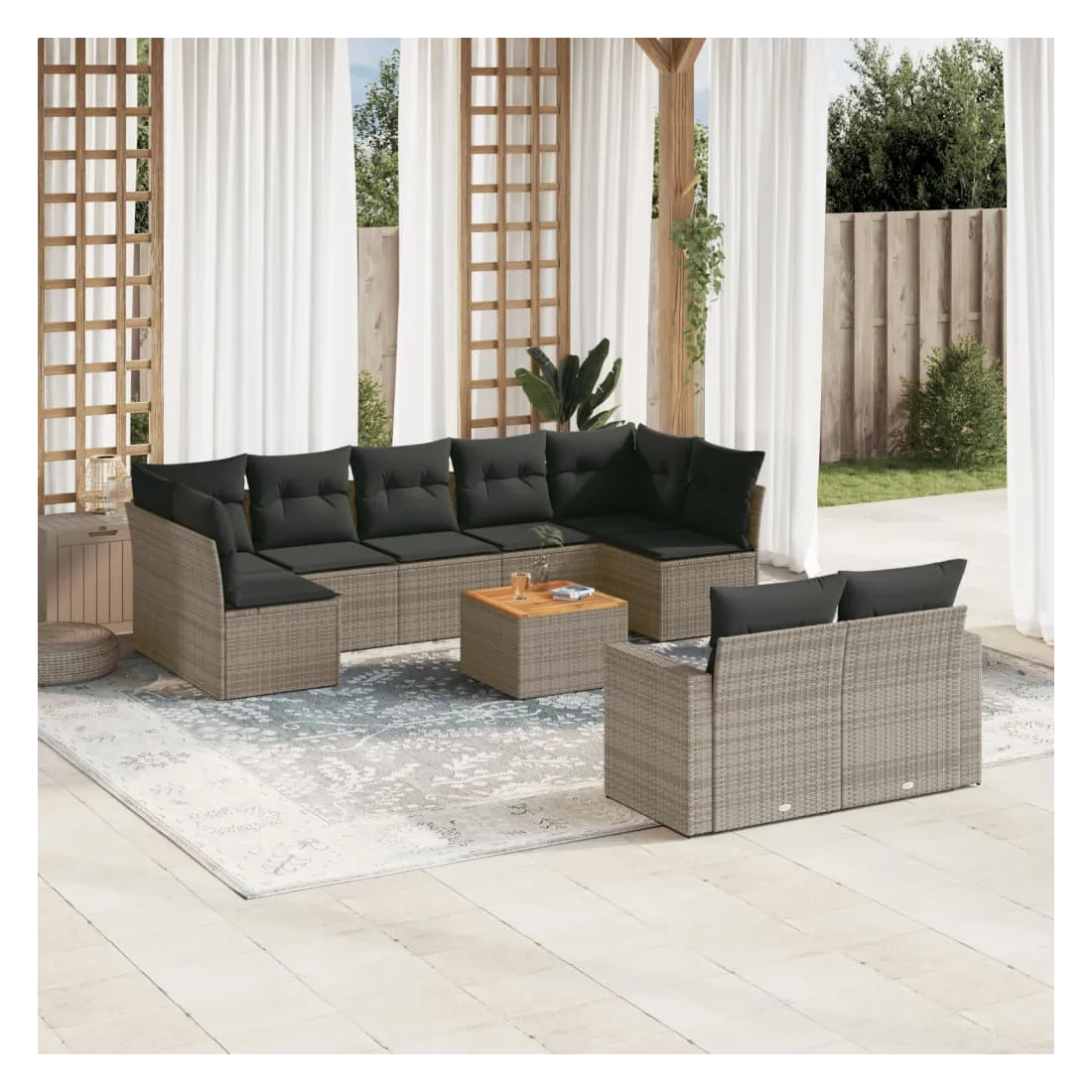 Salon de jardin avec coussins 10 pcs gris résine tressée