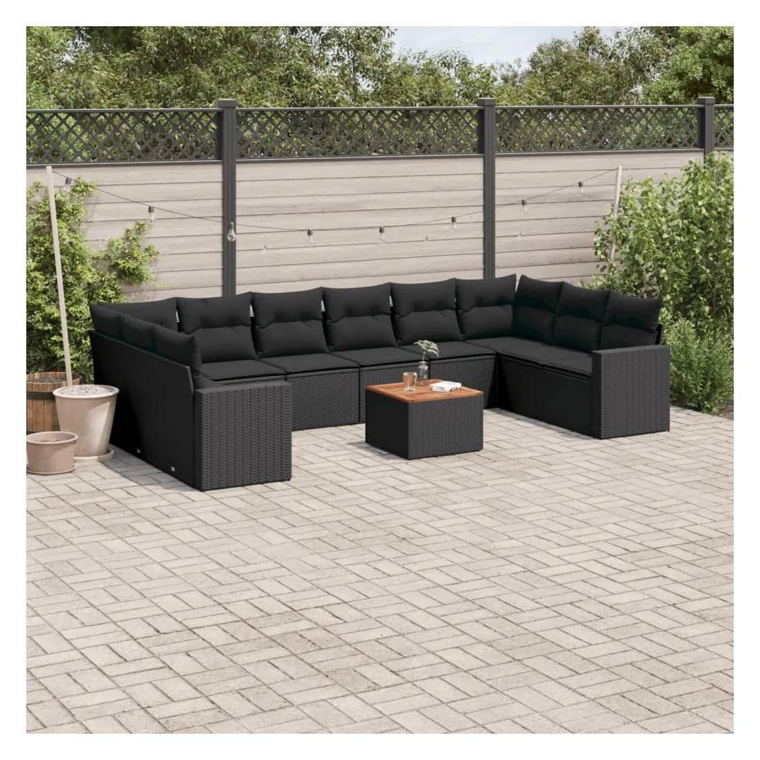 Salon de jardin 11 pcs avec coussins noir résine tressée
