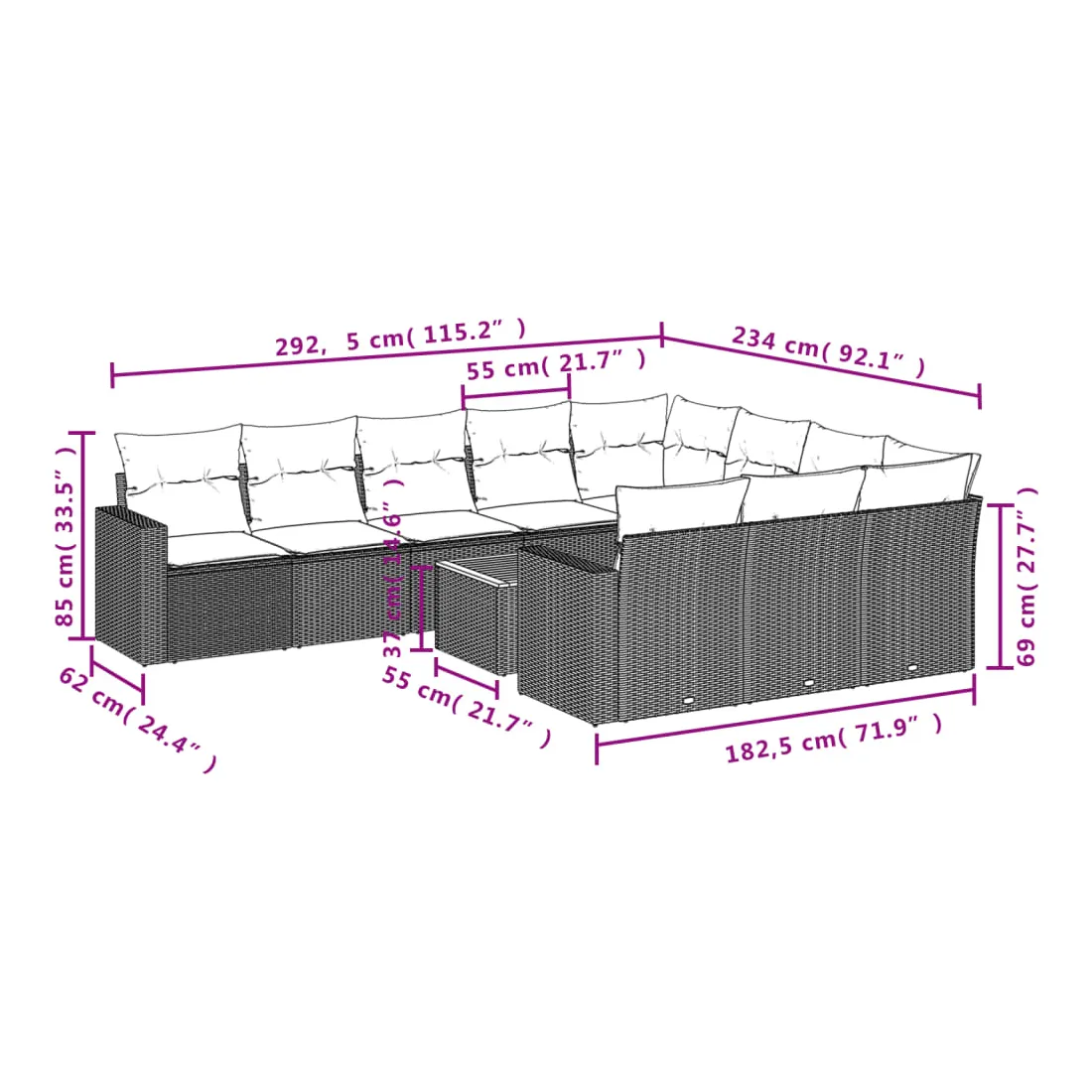 - Dimensions du coussin de siège : 55 x 55 x 3 cm (l x P x é)