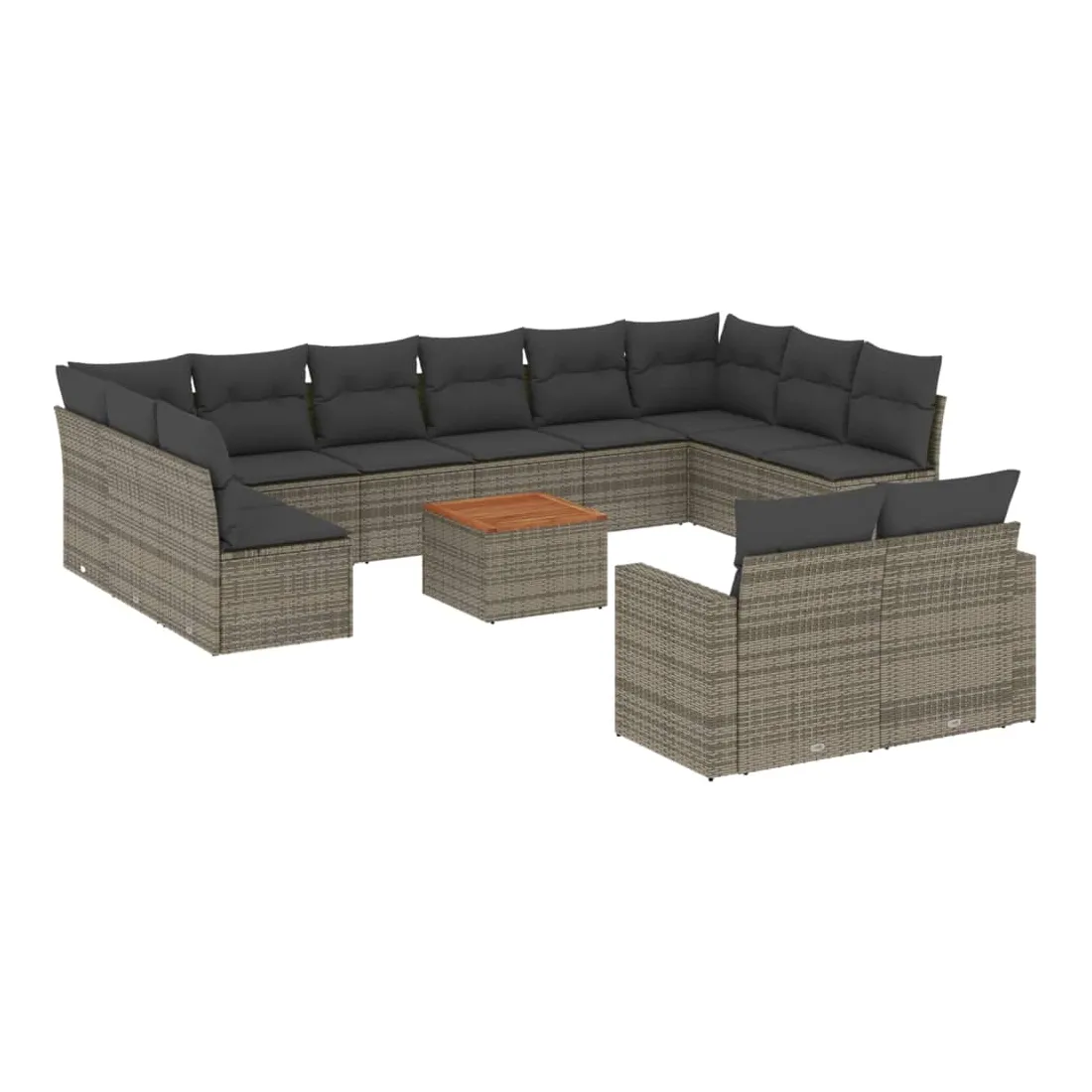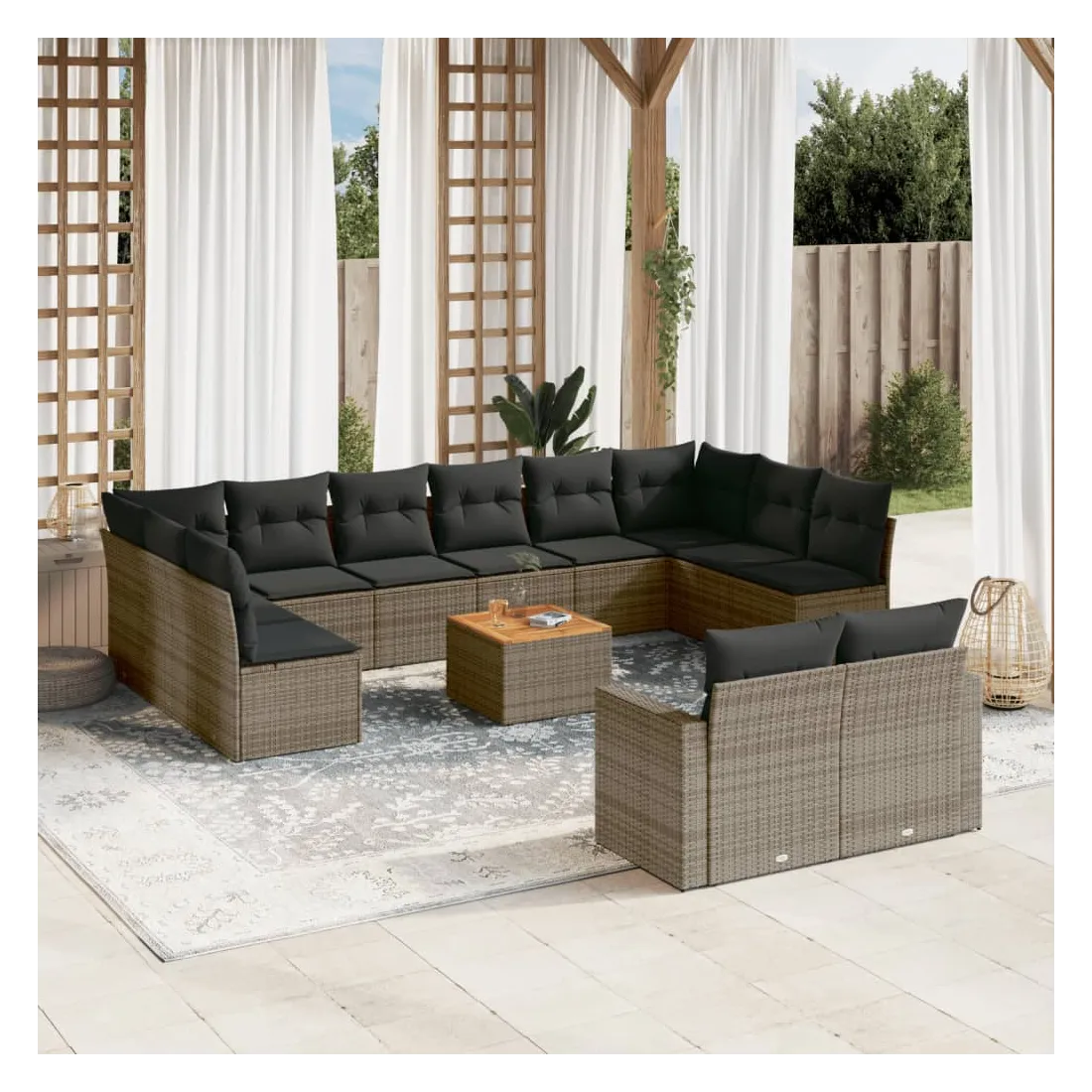 Cet ensemble de canapés de jardin est le complément parfait de votre arrière-cour, terrasse ou patio, offrant un espace confortable et accueillant pour discuter avec la famille et les amis ou simplement se détendre et profiter de l'extérieur. Matériau durable : la résine tressée, également connue sous le nom de poly rotin, est un matériau synthétique solide et nécessitant peu d'entretien qui ressemble au rotin naturel. Il est léger, facile à nettoyer et couramment utilisé pour les meubles d'extérieur en raison de sa durabilité et de ses propriétés de résistance aux intempéries.Dessus stable et facile à nettoyer : cette table de jardin a un dessus en bois d'acacia robuste, durable et facile à nettoyer avec un chiffon humide.Expérience d'assise confortable : ce mobilier d'extérieur, doté de coussins épais, offre une expérience d'assise confortable.Housse amovible et lavable : ces coussins de siège sont dotés de housses amovibles pour un lavage et un entretien faciles.Conception modulaire : cet ensemble de meubles d'extérieur a une conception modulaire, ce qui le rend complètement flexible et facile à déplacer, afin que vous puissiez créer un agencement de meubles d'extérieur personnalisé. Bon à savoir :Pour que vos meubles d'extérieur restent beaux, nous vous recommandons de les protéger avec une housse imperméable.