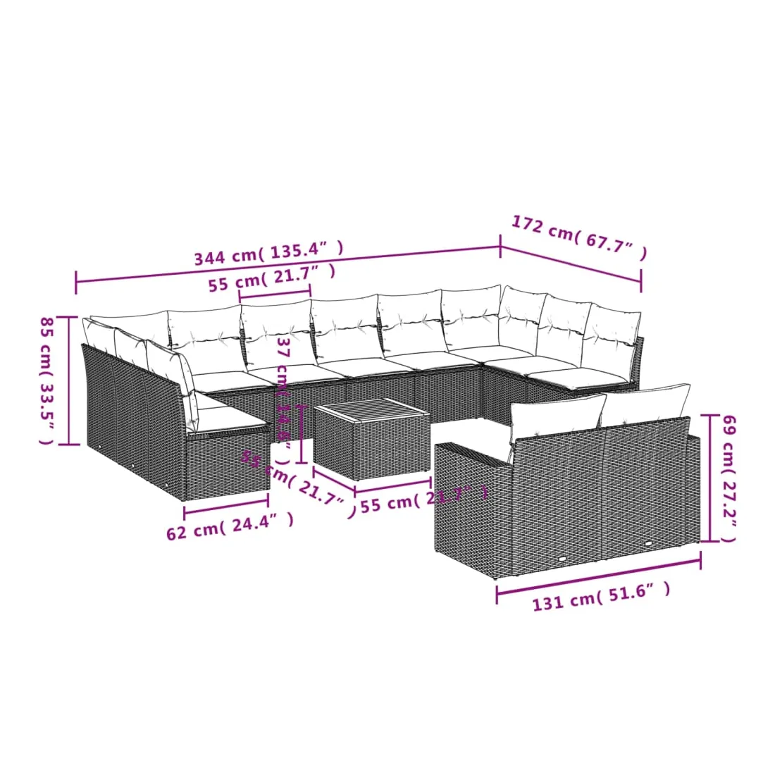 - Dimensions du coussin de dossier : 55 x 45 x 13 cm (L x l x é)