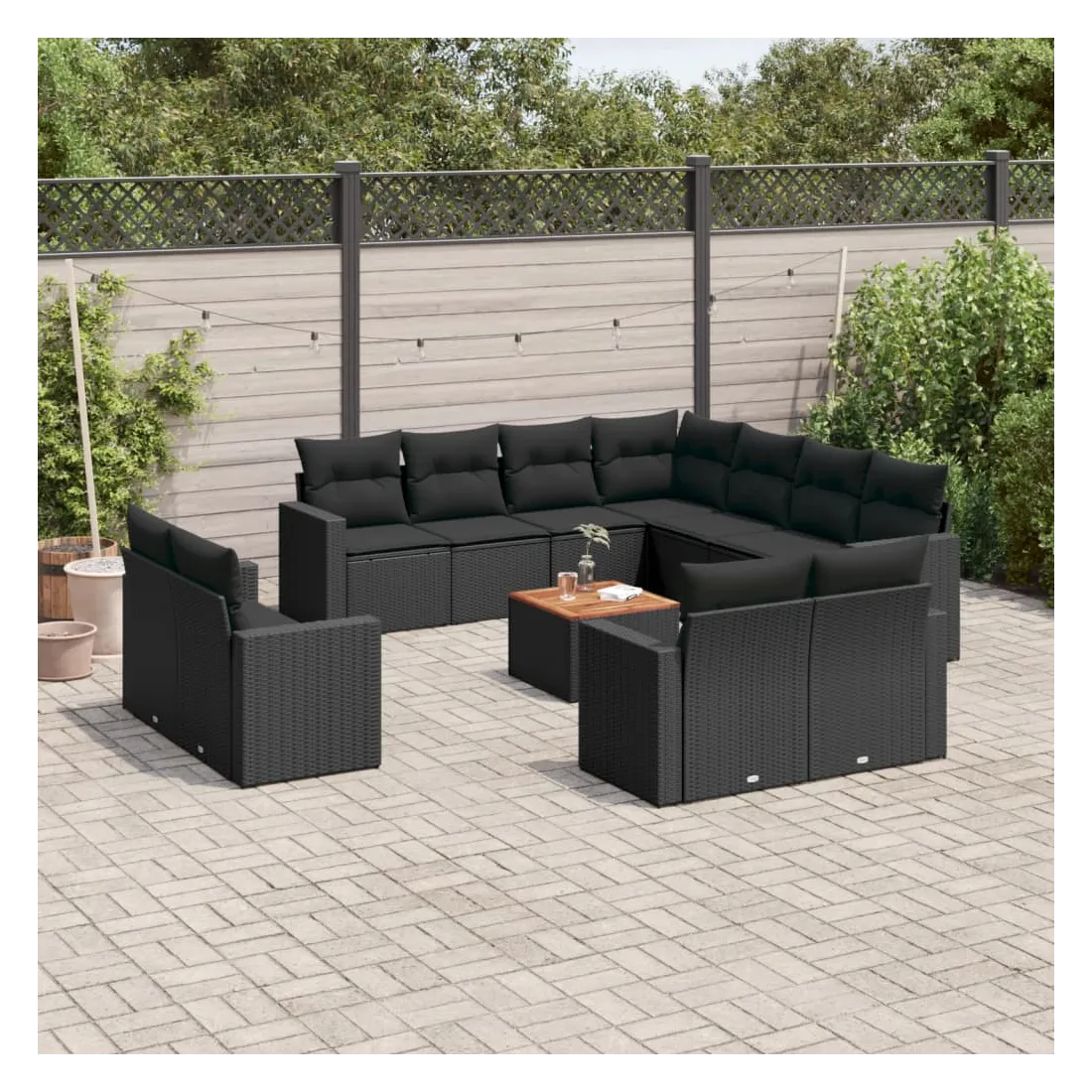 Cet ensemble de canapés de jardin est le complément parfait de votre arrière-cour, terrasse ou patio, offrant un espace confortable et accueillant pour discuter avec la famille et les amis ou simplement se détendre et profiter de l'extérieur. Matériau durable : la résine tressée, également connue sous le nom de poly rotin, est un matériau synthétique solide et nécessitant peu d'entretien qui ressemble au rotin naturel. Il est léger, facile à nettoyer et couramment utilisé pour les meubles d'extérieur en raison de sa durabilité et de ses propriétés de résistance aux intempéries.Dessus stable et facile à nettoyer : cette table de jardin a un dessus en bois d'acacia robuste, durable et facile à nettoyer avec un chiffon humide.Expérience d'assise confortable : ce mobilier d'extérieur, doté de coussins épais, offre une expérience d'assise confortable.Housse amovible et lavable : ces coussins de siège sont dotés de housses amovibles pour un lavage et un entretien faciles.Conception modulaire : cet ensemble de meubles d'extérieur a une conception modulaire, ce qui le rend complètement flexible et facile à déplacer, afin que vous puissiez créer un agencement de meubles d'extérieur personnalisé. Bon à savoir :Pour que vos meubles d'extérieur restent beaux, nous vous recommandons de les protéger avec une housse imperméable.