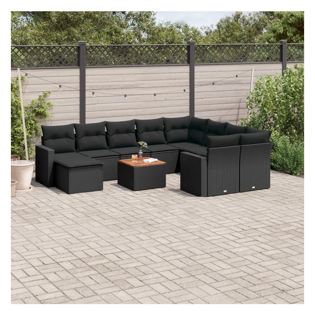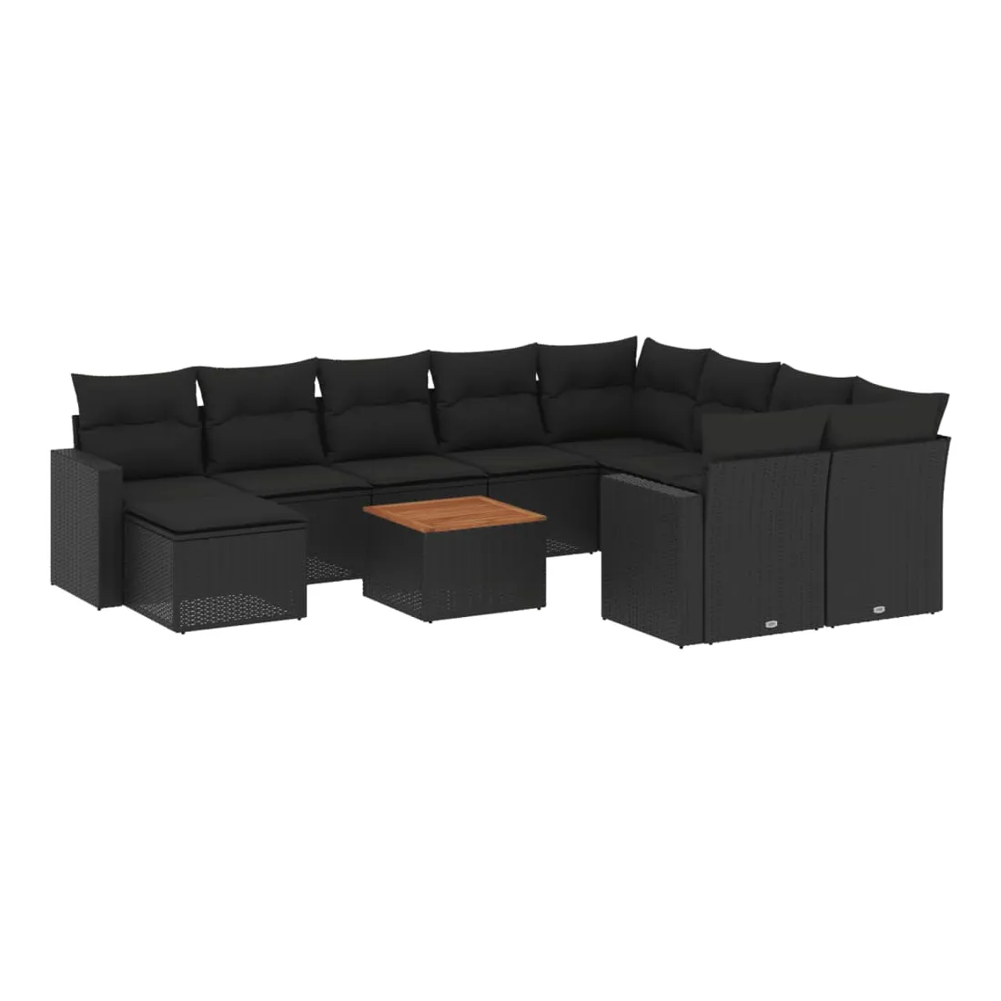 Cet ensemble de canapés de jardin est le complément parfait de votre arrière-cour, terrasse ou patio, offrant un espace confortable et accueillant pour discuter avec la famille et les amis ou simplement se détendre et profiter de l'extérieur. Matériau durable : la résine tressée, également connue sous le nom de poly rotin, est un matériau synthétique solide et nécessitant peu d'entretien qui ressemble au rotin naturel. Il est léger, facile à nettoyer et couramment utilisé pour les meubles d'extérieur en raison de sa durabilité et de ses propriétés de résistance aux intempéries.Dessus stable et facile à nettoyer : cette table de jardin a un dessus en bois d'acacia robuste, durable et facile à nettoyer avec un chiffon humide.Expérience d'assise confortable : ce mobilier d'extérieur, doté de coussins épais, offre une expérience d'assise confortable.Housse amovible et lavable : ces coussins de siège sont dotés de housses amovibles pour un lavage et un entretien faciles.Conception modulaire : cet ensemble de meubles d'extérieur a une conception modulaire, ce qui le rend complètement flexible et facile à déplacer, afin que vous puissiez créer un agencement de meubles d'extérieur personnalisé. Bon à savoir :Pour que vos meubles d'extérieur restent beaux, nous vous recommandons de les protéger avec une housse imperméable.