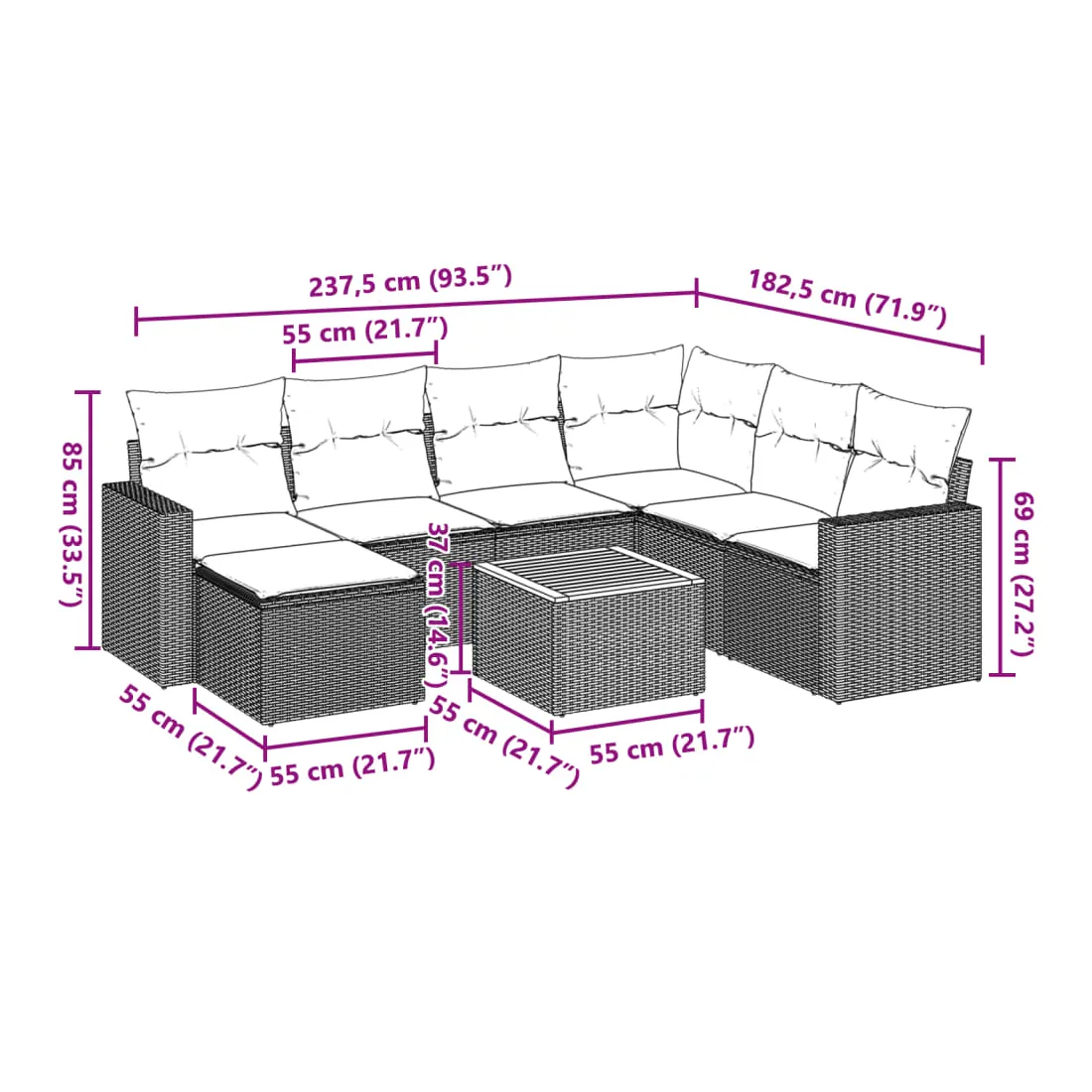 - Dimensions : 55 x 55 x 37 cm (L x l x H)