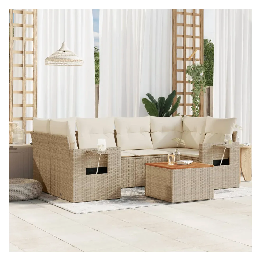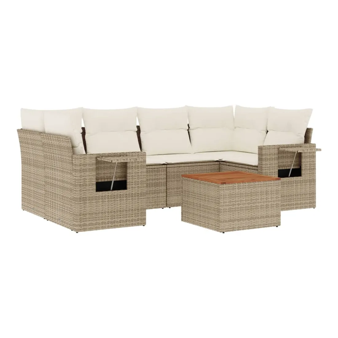 Cet ensemble de canapés de jardin est le complément parfait de votre arrière-cour, terrasse ou patio, offrant un espace confortable et accueillant pour discuter avec la famille et les amis ou simplement se détendre et profiter de l'extérieur. Matériau durable : la résine tressée, également connue sous le nom de poly rotin, est un matériau synthétique solide et nécessitant peu d'entretien qui ressemble au rotin naturel. Il est léger, facile à nettoyer et couramment utilisé pour les meubles d'extérieur en raison de sa durabilité et de ses propriétés de résistance aux intempéries.Table d'appoint pratique : ce mobilier d'extérieur comprend une table d'appoint pliable avec un ressort à gaz sur les accoudoirs, offrant un endroit pratique pour garder vos essentiels à portée de main.Dessus stable et facile à nettoyer : cette table de jardin a un dessus en bois d'acacia robuste, durable et facile à nettoyer avec un chiffon humide.Housse amovible et lavable : ces coussins de siège sont dotés de housses amovibles pour un lavage et un entretien faciles.Conception modulaire : cet ensemble de meubles d'extérieur a une conception modulaire, ce qui le rend complètement flexible et facile à déplacer, afin que vous puissiez créer un agencement de meubles d'extérieur personnalisé. Bon à savoir :Pour que vos meubles d'extérieur restent beaux, nous vous recommandons de les protéger avec une housse imperméable.