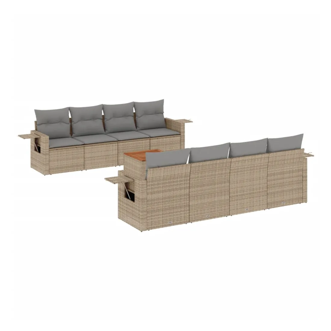Cet ensemble de canapés de jardin est le complément parfait de votre arrière-cour, terrasse ou patio, offrant un espace confortable et accueillant pour discuter avec la famille et les amis ou simplement se détendre et profiter de l'extérieur. Matériau durable : la résine tressée, également connue sous le nom de poly rotin, est un matériau synthétique solide et nécessitant peu d'entretien qui ressemble au rotin naturel. Il est léger, facile à nettoyer et couramment utilisé pour les meubles d'extérieur en raison de sa durabilité et de ses propriétés de résistance aux intempéries.Table d'appoint pratique : ce mobilier d'extérieur comprend une table d'appoint pliable avec un ressort à gaz sur les accoudoirs, offrant un endroit pratique pour garder vos essentiels à portée de main.Dessus stable et facile à nettoyer : cette table de jardin a un dessus en bois d'acacia robuste, durable et facile à nettoyer avec un chiffon humide.Housse amovible et lavable : ces coussins de siège sont dotés de housses amovibles pour un lavage et un entretien faciles.Conception modulaire : cet ensemble de meubles d'extérieur a une conception modulaire, ce qui le rend complètement flexible et facile à déplacer, afin que vous puissiez créer un agencement de meubles d'extérieur personnalisé. Bon à savoir :Pour que vos meubles d'extérieur restent beaux, nous vous recommandons de les protéger avec une housse imperméable.