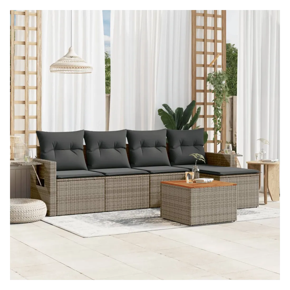 Cet ensemble de canapés de jardin est le complément parfait de votre arrière-cour, terrasse ou patio, offrant un espace confortable et accueillant pour discuter avec la famille et les amis ou simplement se détendre et profiter de l'extérieur. Matériau durable : la résine tressée, également connue sous le nom de poly rotin, est un matériau synthétique solide et nécessitant peu d'entretien qui ressemble au rotin naturel. Il est léger, facile à nettoyer et couramment utilisé pour les meubles d'extérieur en raison de sa durabilité et de ses propriétés de résistance aux intempéries.Table d'appoint pratique : ce mobilier d'extérieur comprend une table d'appoint pliable avec un ressort à gaz sur les accoudoirs, offrant un endroit pratique pour garder vos essentiels à portée de main.Dessus stable et facile à nettoyer : cette table de jardin a un dessus en bois d'acacia robuste, durable et facile à nettoyer avec un chiffon humide.Housse amovible et lavable : ces coussins de siège sont dotés de housses amovibles pour un lavage et un entretien faciles.Conception modulaire : cet ensemble de meubles d'extérieur a une conception modulaire, ce qui le rend complètement flexible et facile à déplacer, afin que vous puissiez créer un agencement de meubles d'extérieur personnalisé. Bon à savoir :Pour que vos meubles d'extérieur restent beaux, nous vous recommandons de les protéger avec une housse imperméable.