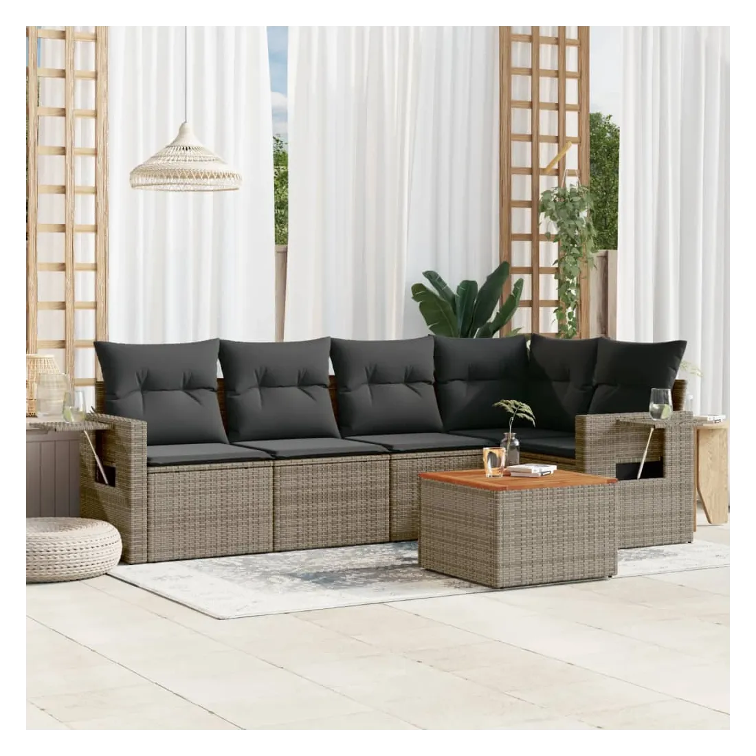 Salon de jardin 6 pcs avec coussins gris résine tressée