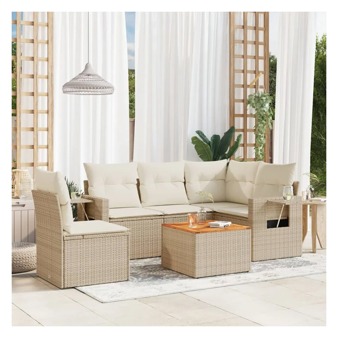 Cet ensemble de canapés de jardin est le complément parfait de votre arrière-cour, terrasse ou patio, offrant un espace confortable et accueillant pour discuter avec la famille et les amis ou simplement se détendre et profiter de l'extérieur. Matériau durable : la résine tressée, également connue sous le nom de poly rotin, est un matériau synthétique solide et nécessitant peu d'entretien qui ressemble au rotin naturel. Il est léger, facile à nettoyer et couramment utilisé pour les meubles d'extérieur en raison de sa durabilité et de ses propriétés de résistance aux intempéries.Table d'appoint pratique : ce mobilier d'extérieur comprend une table d'appoint pliable avec un ressort à gaz sur les accoudoirs, offrant un endroit pratique pour garder vos essentiels à portée de main.Dessus stable et facile à nettoyer : cette table de jardin a un dessus en bois d'acacia robuste, durable et facile à nettoyer avec un chiffon humide.Housse amovible et lavable : ces coussins de siège sont dotés de housses amovibles pour un lavage et un entretien faciles.Conception modulaire : cet ensemble de meubles d'extérieur a une conception modulaire, ce qui le rend complètement flexible et facile à déplacer, afin que vous puissiez créer un agencement de meubles d'extérieur personnalisé. Bon à savoir :Pour que vos meubles d'extérieur restent beaux, nous vous recommandons de les protéger avec une housse imperméable.