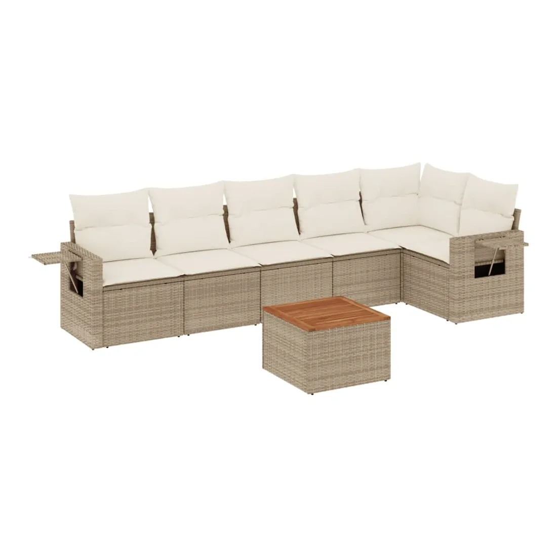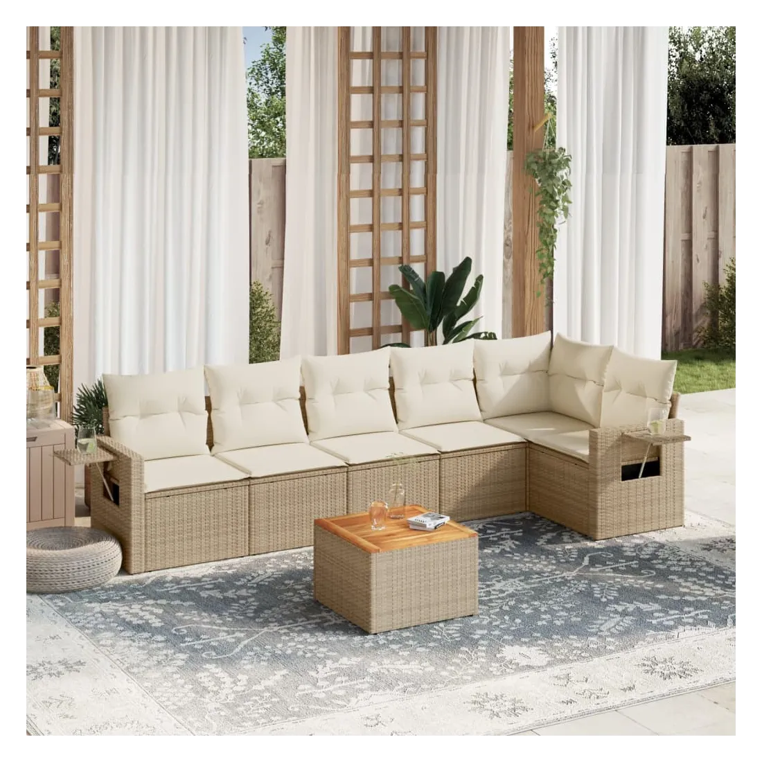 Salon de jardin avec coussins 7 pcs beige résine tressée