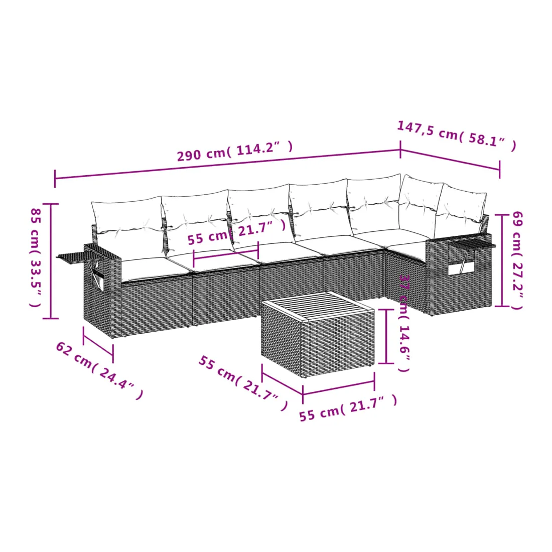 • Dimensions : 55 x 55 x 37 cm (L x l x H)