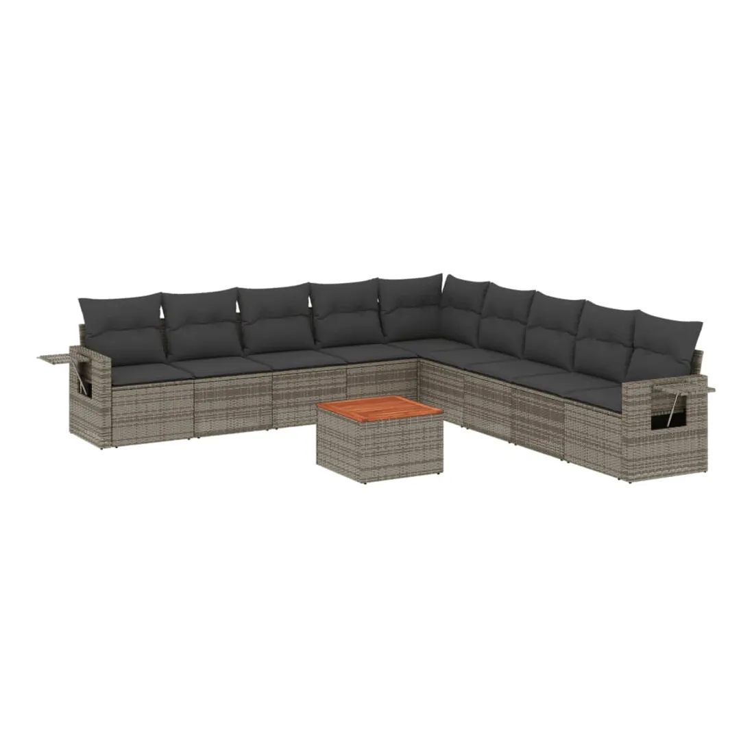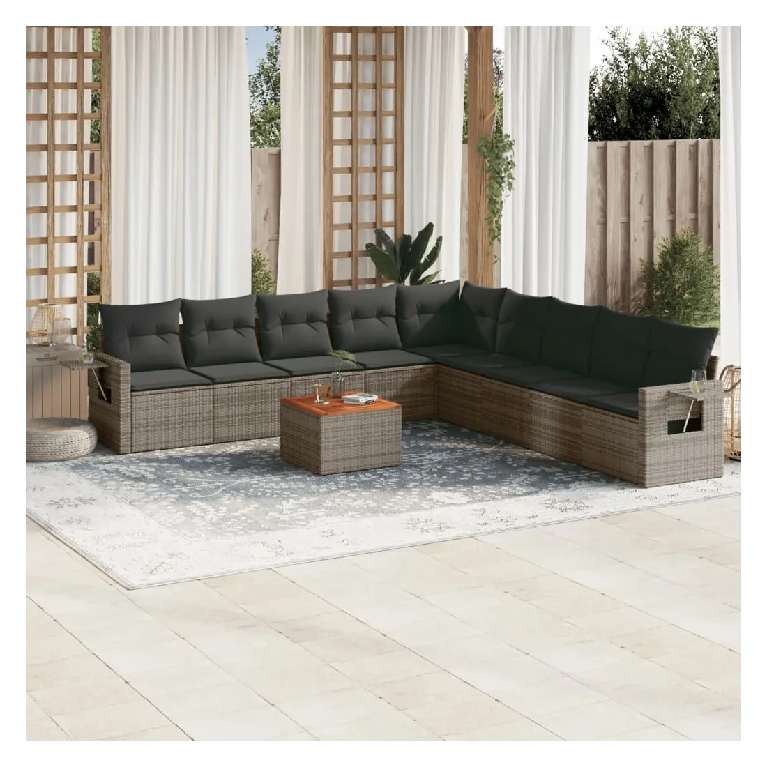 Cet ensemble de canapés de jardin est le complément parfait de votre arrière-cour, terrasse ou patio, offrant un espace confortable et accueillant pour discuter avec la famille et les amis ou simplement se détendre et profiter de l'extérieur. Matériau durable : la résine tressée, également connue sous le nom de poly rotin, est un matériau synthétique solide et nécessitant peu d'entretien qui ressemble au rotin naturel. Il est léger, facile à nettoyer et couramment utilisé pour les meubles d'extérieur en raison de sa durabilité et de ses propriétés de résistance aux intempéries.Table d'appoint pratique : ce mobilier d'extérieur comprend une table d'appoint pliable avec un ressort à gaz sur les accoudoirs, offrant un endroit pratique pour garder vos essentiels à portée de main.Dessus stable et facile à nettoyer : cette table de jardin a un dessus en bois d'acacia robuste, durable et facile à nettoyer avec un chiffon humide.Housse amovible et lavable : ces coussins de siège sont dotés de housses amovibles pour un lavage et un entretien faciles.Conception modulaire : cet ensemble de meubles d'extérieur a une conception modulaire, ce qui le rend complètement flexible et facile à déplacer, afin que vous puissiez créer un agencement de meubles d'extérieur personnalisé. Bon à savoir :Pour que vos meubles d'extérieur restent beaux, nous vous recommandons de les protéger avec une housse imperméable.