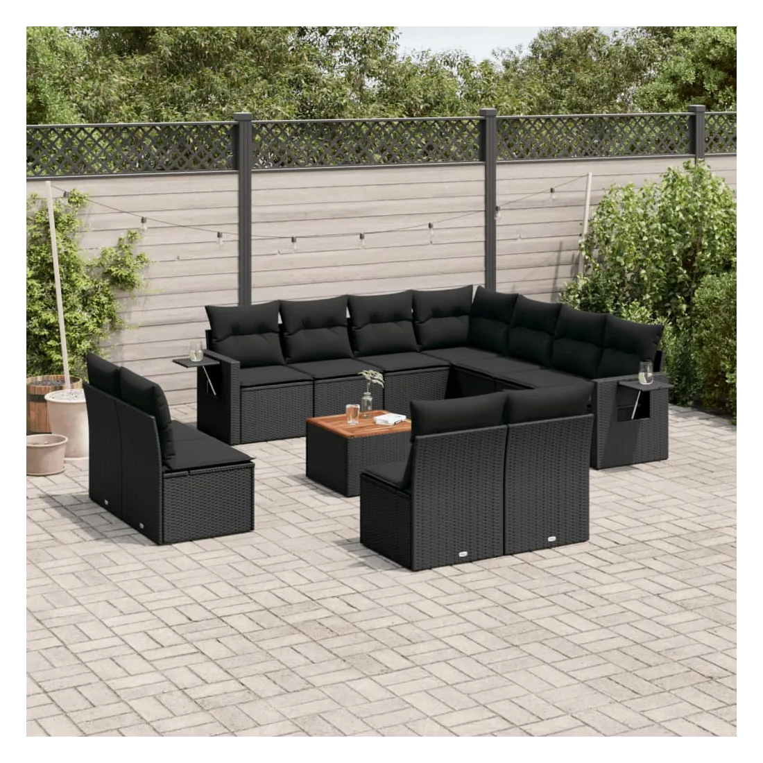 Cet ensemble de canapés de jardin est le complément parfait de votre arrière-cour, terrasse ou patio, offrant un espace confortable et accueillant pour discuter avec la famille et les amis ou simplement se détendre et profiter de l'extérieur. Matériau durable : la résine tressée, également connue sous le nom de poly rotin, est un matériau synthétique solide et nécessitant peu d'entretien qui ressemble au rotin naturel. Il est léger, facile à nettoyer et couramment utilisé pour les meubles d'extérieur en raison de sa durabilité et de ses propriétés de résistance aux intempéries.Table d'appoint pratique : ce mobilier d'extérieur comprend une table d'appoint pliable avec un ressort à gaz sur les accoudoirs, offrant un endroit pratique pour garder vos essentiels à portée de main.Dessus stable et facile à nettoyer : cette table de jardin a un dessus en bois d'acacia robuste, durable et facile à nettoyer avec un chiffon humide.Housse amovible et lavable : ces coussins de siège sont dotés de housses amovibles pour un lavage et un entretien faciles.Conception modulaire : cet ensemble de meubles d'extérieur a une conception modulaire, ce qui le rend complètement flexible et facile à déplacer, afin que vous puissiez créer un agencement de meubles d'extérieur personnalisé. Bon à savoir :Pour que vos meubles d'extérieur restent beaux, nous vous recommandons de les protéger avec une housse imperméable.
