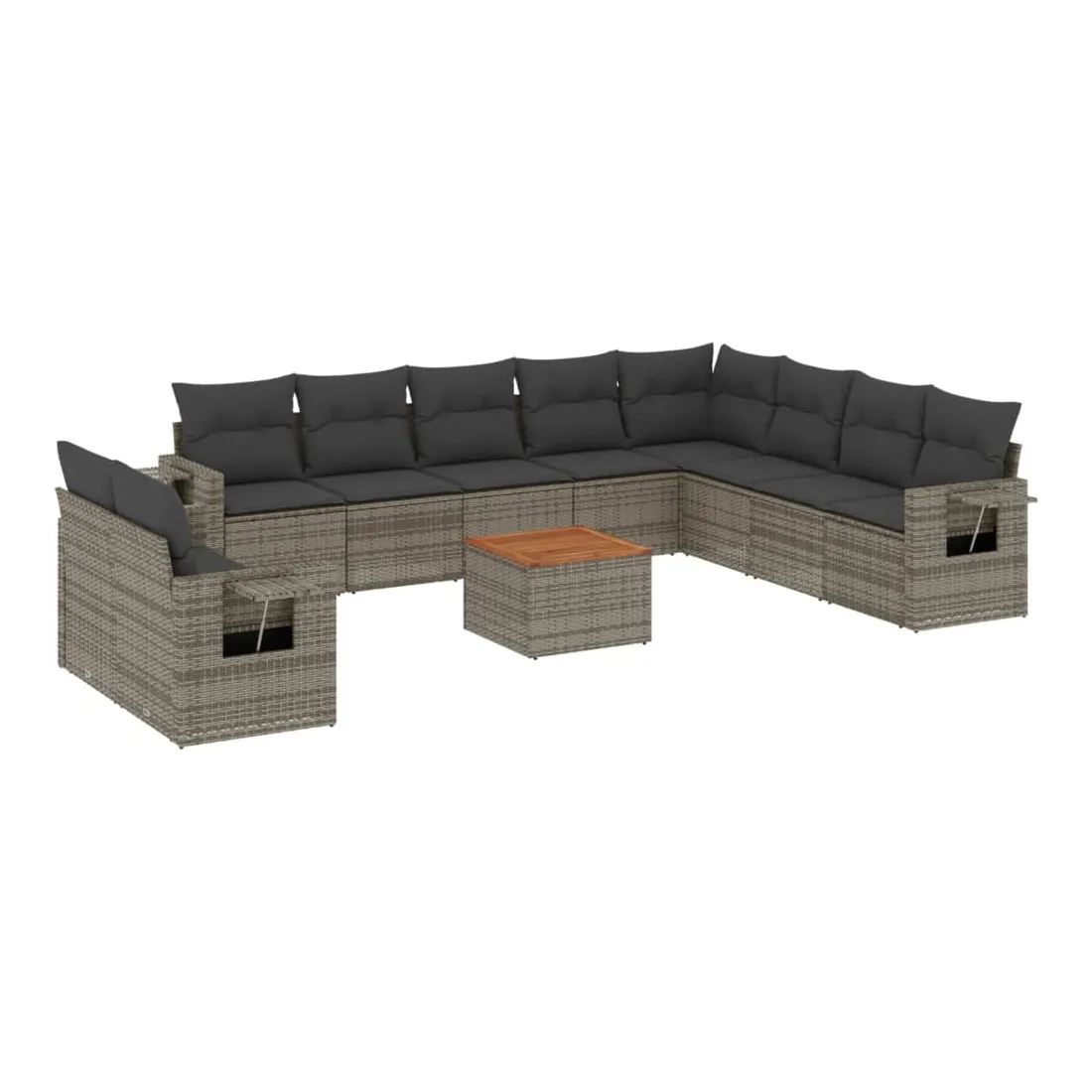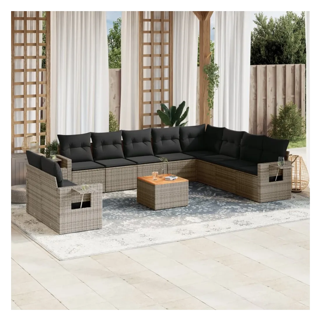 Cet ensemble de canapés de jardin est le complément parfait de votre arrière-cour, terrasse ou patio, offrant un espace confortable et accueillant pour discuter avec la famille et les amis ou simplement se détendre et profiter de l'extérieur. Matériau durable : la résine tressée, également connue sous le nom de poly rotin, est un matériau synthétique solide et nécessitant peu d'entretien qui ressemble au rotin naturel. Il est léger, facile à nettoyer et couramment utilisé pour les meubles d'extérieur en raison de sa durabilité et de ses propriétés de résistance aux intempéries.Table d'appoint pratique : ce mobilier d'extérieur comprend une table d'appoint pliable avec un ressort à gaz sur les accoudoirs, offrant un endroit pratique pour garder vos essentiels à portée de main.Dessus stable et facile à nettoyer : cette table de jardin a un dessus en bois d'acacia robuste, durable et facile à nettoyer avec un chiffon humide.Housse amovible et lavable : ces coussins de siège sont dotés de housses amovibles pour un lavage et un entretien faciles.Conception modulaire : cet ensemble de meubles d'extérieur a une conception modulaire, ce qui le rend complètement flexible et facile à déplacer, afin que vous puissiez créer un agencement de meubles d'extérieur personnalisé. Bon à savoir :Pour que vos meubles d'extérieur restent beaux, nous vous recommandons de les protéger avec une housse imperméable.