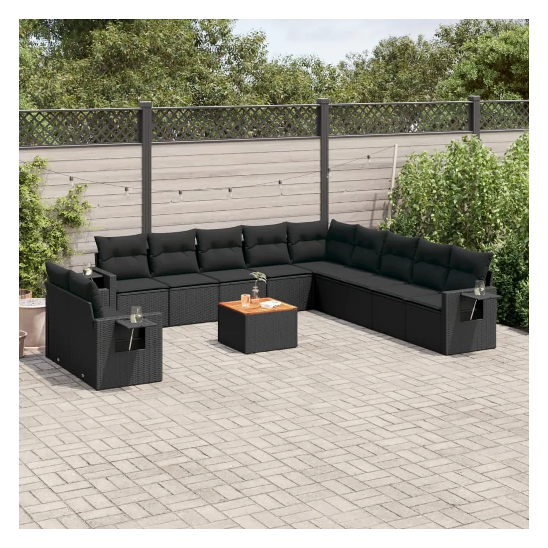 Cet ensemble de canapés de jardin est le complément parfait de votre arrière-cour, terrasse ou patio, offrant un espace confortable et accueillant pour discuter avec la famille et les amis ou simplement se détendre et profiter de l'extérieur. Matériau durable : la résine tressée, également connue sous le nom de poly rotin, est un matériau synthétique solide et nécessitant peu d'entretien qui ressemble au rotin naturel. Il est léger, facile à nettoyer et couramment utilisé pour les meubles d'extérieur en raison de sa durabilité et de ses propriétés de résistance aux intempéries.Table d'appoint pratique : ce mobilier d'extérieur comprend une table d'appoint pliable avec un ressort à gaz sur les accoudoirs, offrant un endroit pratique pour garder vos essentiels à portée de main.Dessus stable et facile à nettoyer : cette table de jardin a un dessus en bois d'acacia robuste, durable et facile à nettoyer avec un chiffon humide.Housse amovible et lavable : ces coussins de siège sont dotés de housses amovibles pour un lavage et un entretien faciles.Conception modulaire : cet ensemble de meubles d'extérieur a une conception modulaire, ce qui le rend complètement flexible et facile à déplacer, afin que vous puissiez créer un agencement de meubles d'extérieur personnalisé. Bon à savoir :Pour que vos meubles d'extérieur restent beaux, nous vous recommandons de les protéger avec une housse imperméable.