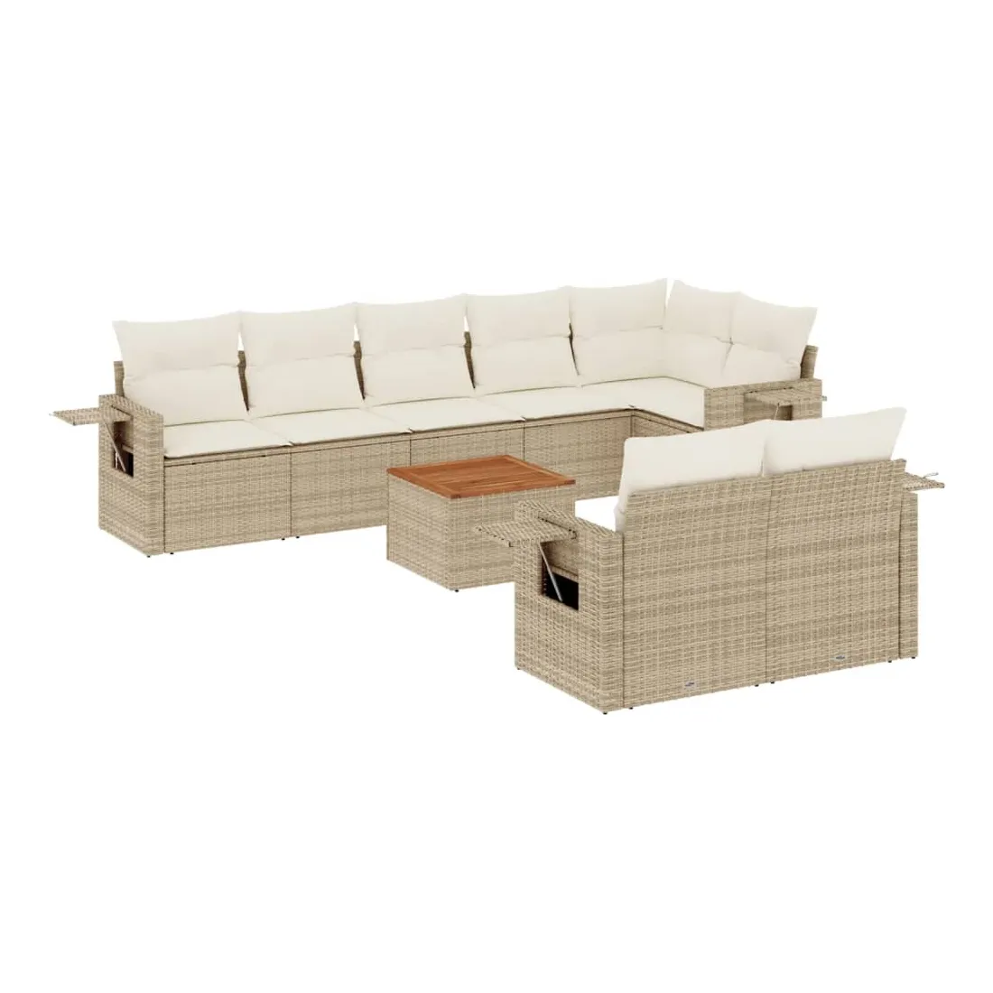 Cet ensemble de canapés de jardin est le complément parfait de votre arrière-cour, terrasse ou patio, offrant un espace confortable et accueillant pour discuter avec la famille et les amis ou simplement se détendre et profiter de l'extérieur. Matériau durable : la résine tressée, également connue sous le nom de poly rotin, est un matériau synthétique solide et nécessitant peu d'entretien qui ressemble au rotin naturel. Il est léger, facile à nettoyer et couramment utilisé pour les meubles d'extérieur en raison de sa durabilité et de ses propriétés de résistance aux intempéries.Table d'appoint pratique : ce mobilier d'extérieur comprend une table d'appoint pliable avec un ressort à gaz sur les accoudoirs, offrant un endroit pratique pour garder vos essentiels à portée de main.Dessus stable et facile à nettoyer : cette table de jardin a un dessus en bois d'acacia robuste, durable et facile à nettoyer avec un chiffon humide.Housse amovible et lavable : ces coussins de siège sont dotés de housses amovibles pour un lavage et un entretien faciles.Conception modulaire : cet ensemble de meubles d'extérieur a une conception modulaire, ce qui le rend complètement flexible et facile à déplacer, afin que vous puissiez créer un agencement de meubles d'extérieur personnalisé. Bon à savoir :Pour que vos meubles d'extérieur restent beaux, nous vous recommandons de les protéger avec une housse imperméable.
