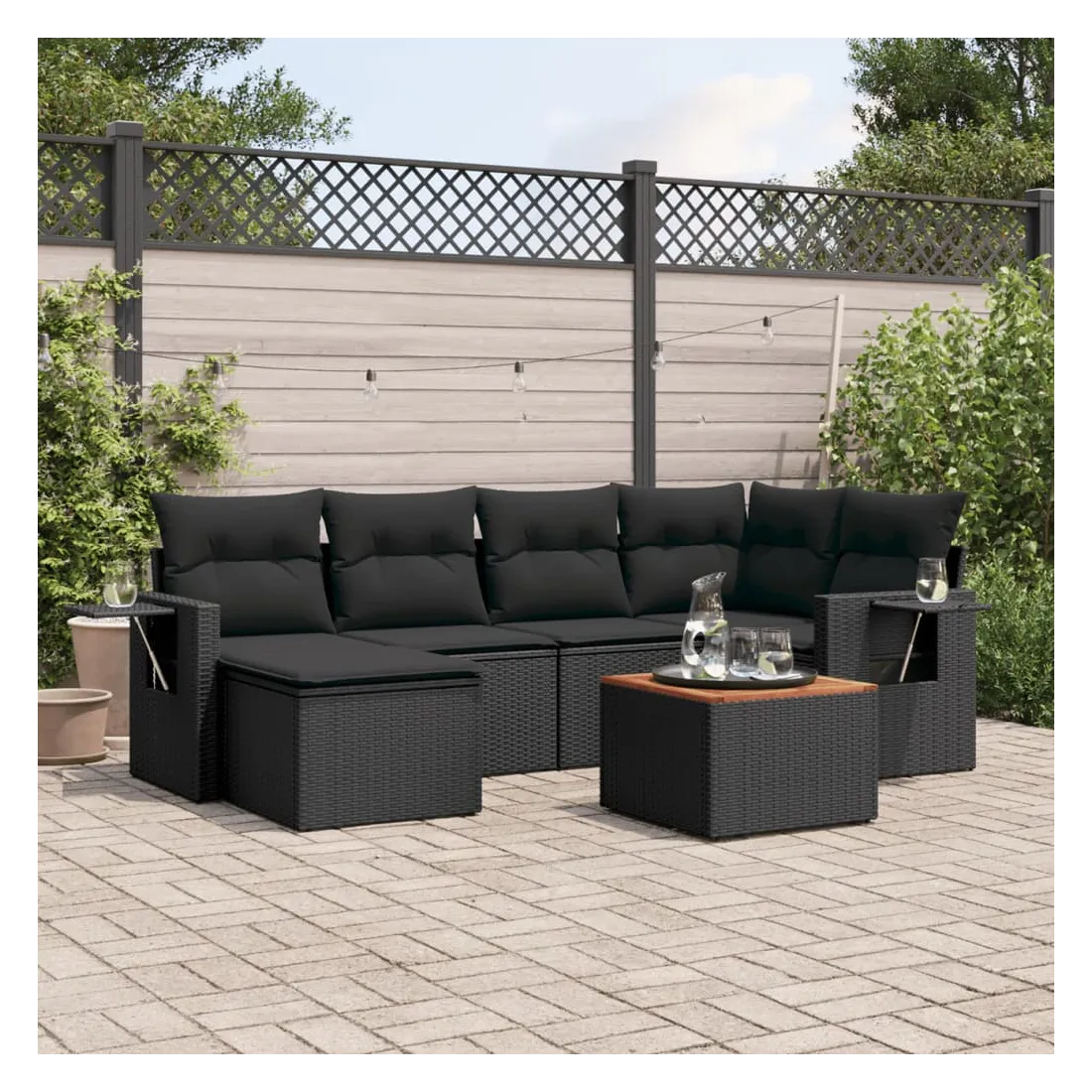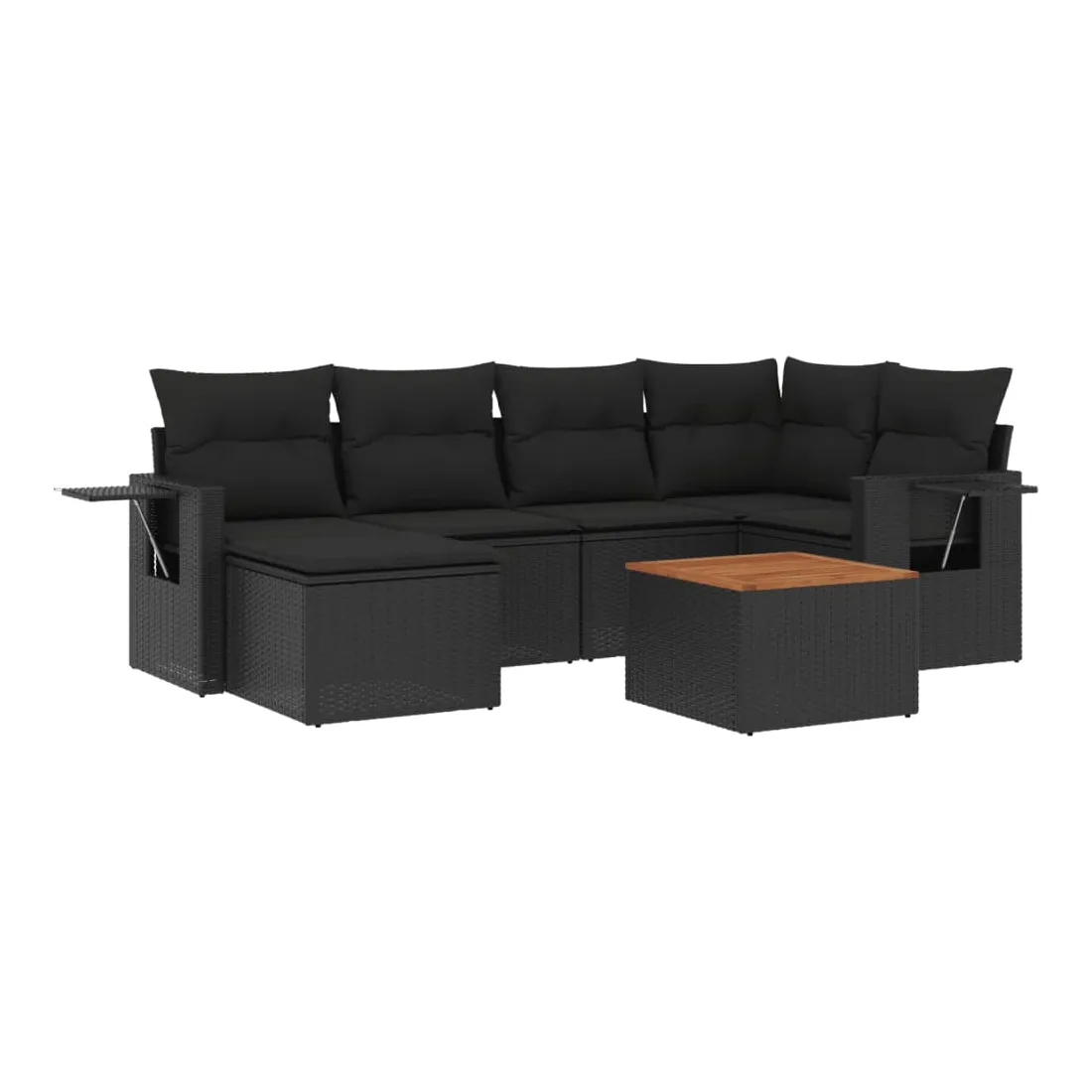 Cet ensemble de canapés de jardin est le complément parfait de votre arrière-cour, terrasse ou patio, offrant un espace confortable et accueillant pour discuter avec la famille et les amis ou simplement se détendre et profiter de l'extérieur. Matériau durable : la résine tressée, également connue sous le nom de poly rotin, est un matériau synthétique solide et nécessitant peu d'entretien qui ressemble au rotin naturel. Il est léger, facile à nettoyer et couramment utilisé pour les meubles d'extérieur en raison de sa durabilité et de ses propriétés de résistance aux intempéries.Table d'appoint pratique : ce mobilier d'extérieur comprend une table d'appoint pliable avec un ressort à gaz sur les accoudoirs, offrant un endroit pratique pour garder vos essentiels à portée de main.Dessus stable et facile à nettoyer : cette table de jardin a un dessus en bois d'acacia robuste, durable et facile à nettoyer avec un chiffon humide.Housse amovible et lavable : ces coussins de siège sont dotés de housses amovibles pour un lavage et un entretien faciles.Conception modulaire : cet ensemble de meubles d'extérieur a une conception modulaire, ce qui le rend complètement flexible et facile à déplacer, afin que vous puissiez créer un agencement de meubles d'extérieur personnalisé. Bon à savoir :Pour que vos meubles d'extérieur restent beaux, nous vous recommandons de les protéger avec une housse imperméable.
