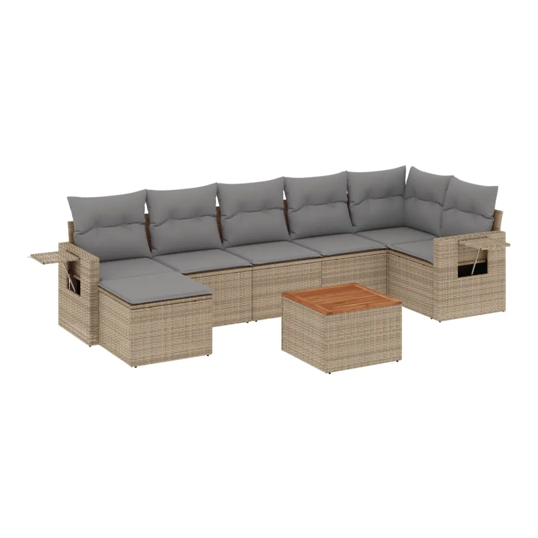 Cet ensemble de canapés de jardin est le complément parfait de votre arrière-cour, terrasse ou patio, offrant un espace confortable et accueillant pour discuter avec la famille et les amis ou simplement se détendre et profiter de l'extérieur. Matériau durable : la résine tressée, également connue sous le nom de poly rotin, est un matériau synthétique solide et nécessitant peu d'entretien qui ressemble au rotin naturel. Il est léger, facile à nettoyer et couramment utilisé pour les meubles d'extérieur en raison de sa durabilité et de ses propriétés de résistance aux intempéries.Table d'appoint pratique : ce mobilier d'extérieur comprend une table d'appoint pliable avec un ressort à gaz sur les accoudoirs, offrant un endroit pratique pour garder vos essentiels à portée de main.Dessus stable et facile à nettoyer : cette table de jardin a un dessus en bois d'acacia robuste, durable et facile à nettoyer avec un chiffon humide.Housse amovible et lavable : ces coussins de siège sont dotés de housses amovibles pour un lavage et un entretien faciles.Conception modulaire : cet ensemble de meubles d'extérieur a une conception modulaire, ce qui le rend complètement flexible et facile à déplacer, afin que vous puissiez créer un agencement de meubles d'extérieur personnalisé. Bon à savoir :Pour que vos meubles d'extérieur restent beaux, nous vous recommandons de les protéger avec une housse imperméable.