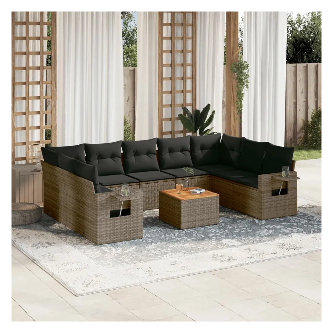 Salon de jardin avec coussins 10 pcs gris résine tressée