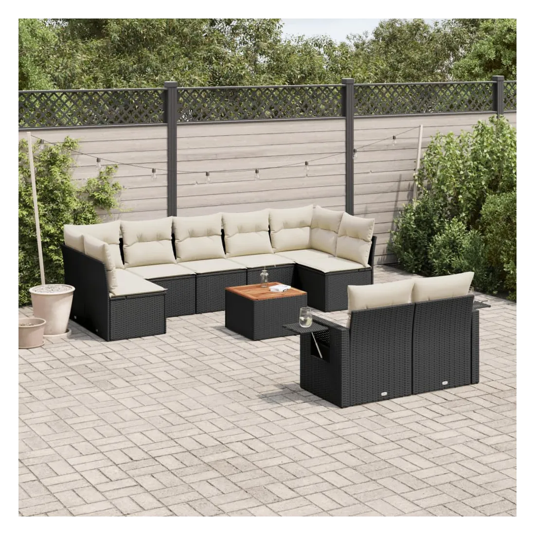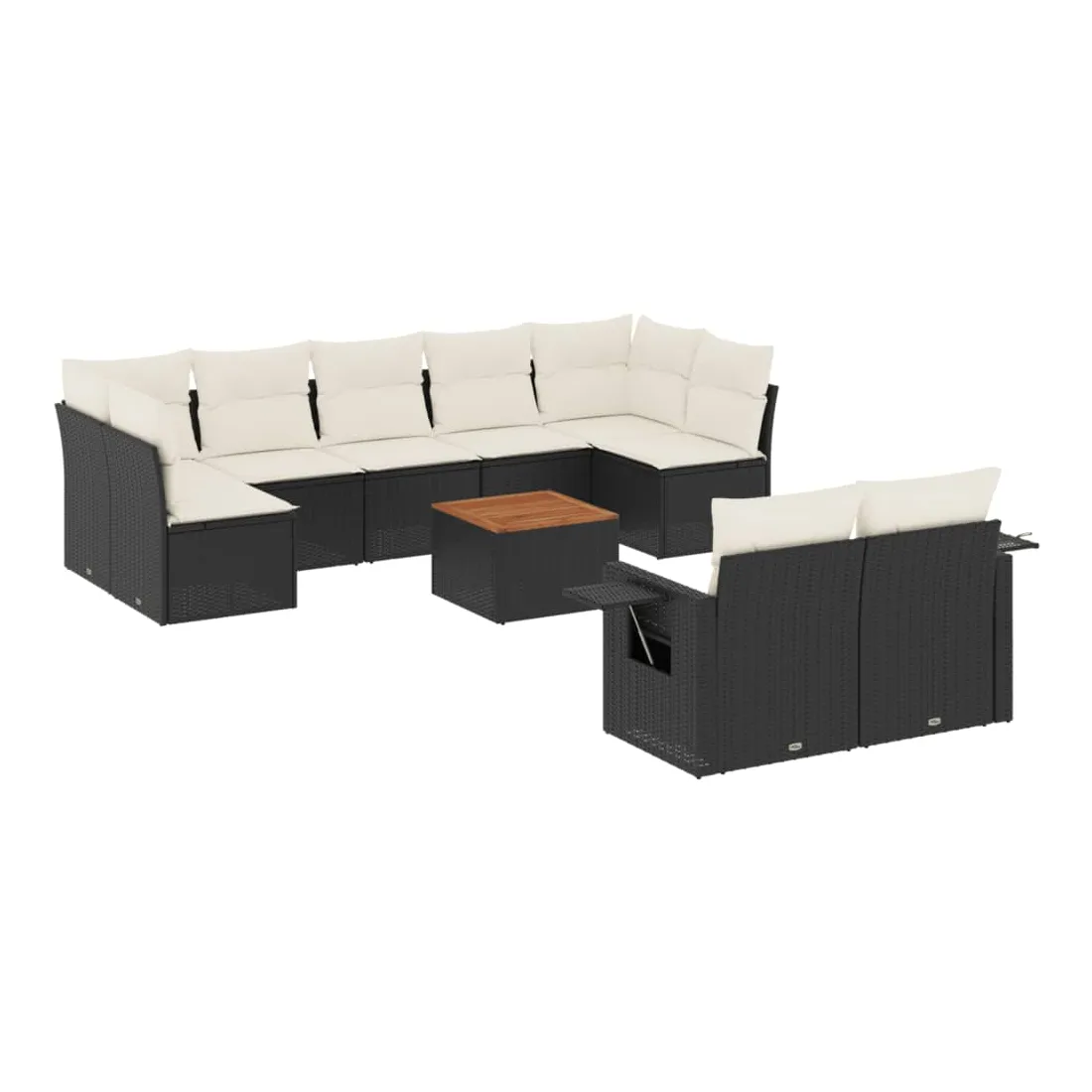 Salon de jardin 10 pcs avec coussins noir résine tressée