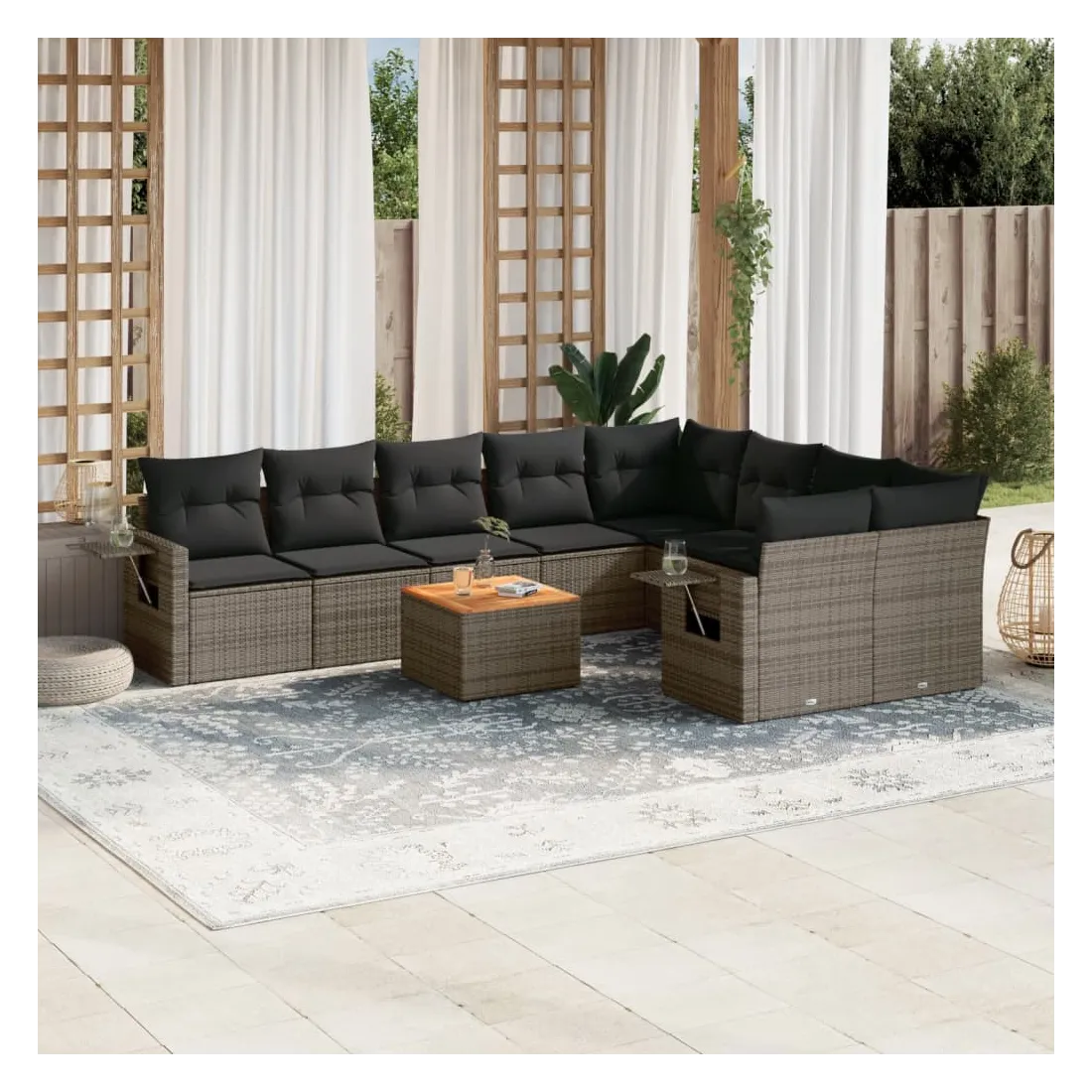 Salon de jardin avec coussins 10 pcs gris résine tressée