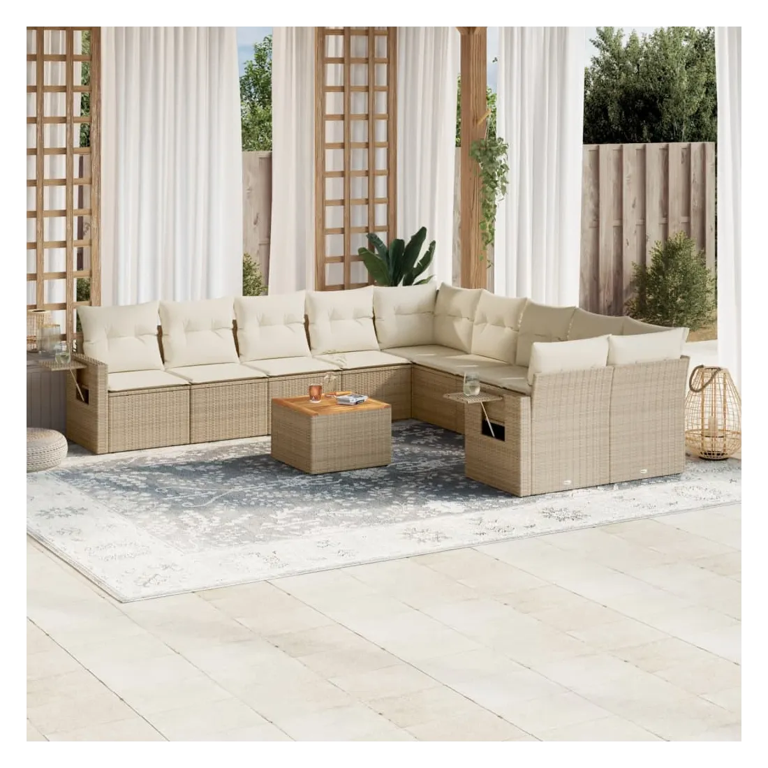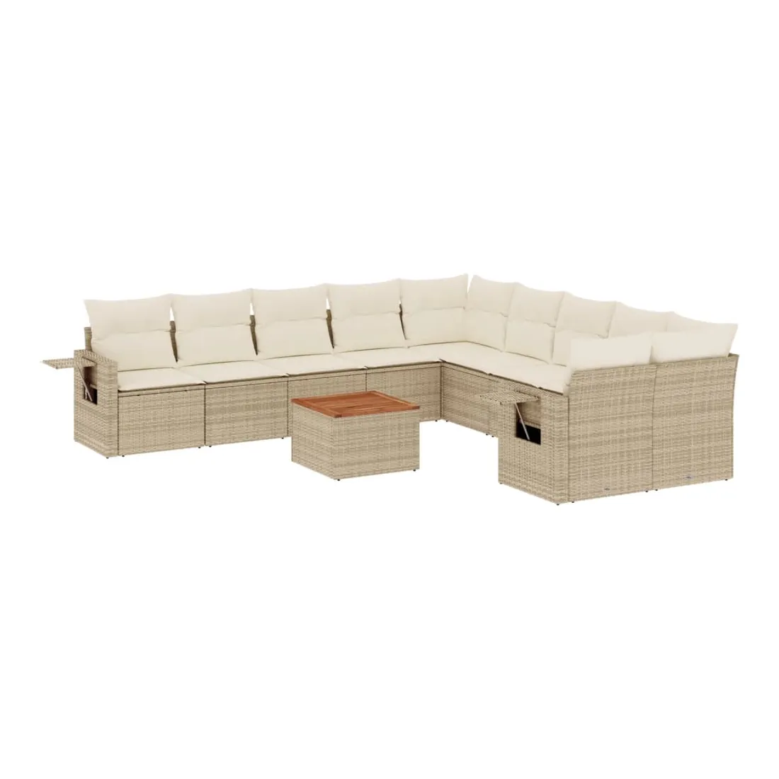 Salon de jardin 11 pcs avec coussins beige résine tressée