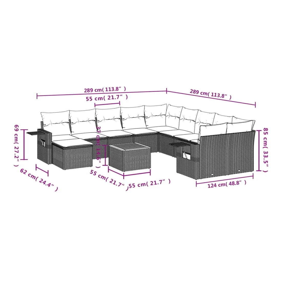 - Dimensions : 55 x 55 x 37 cm (L x l x H)