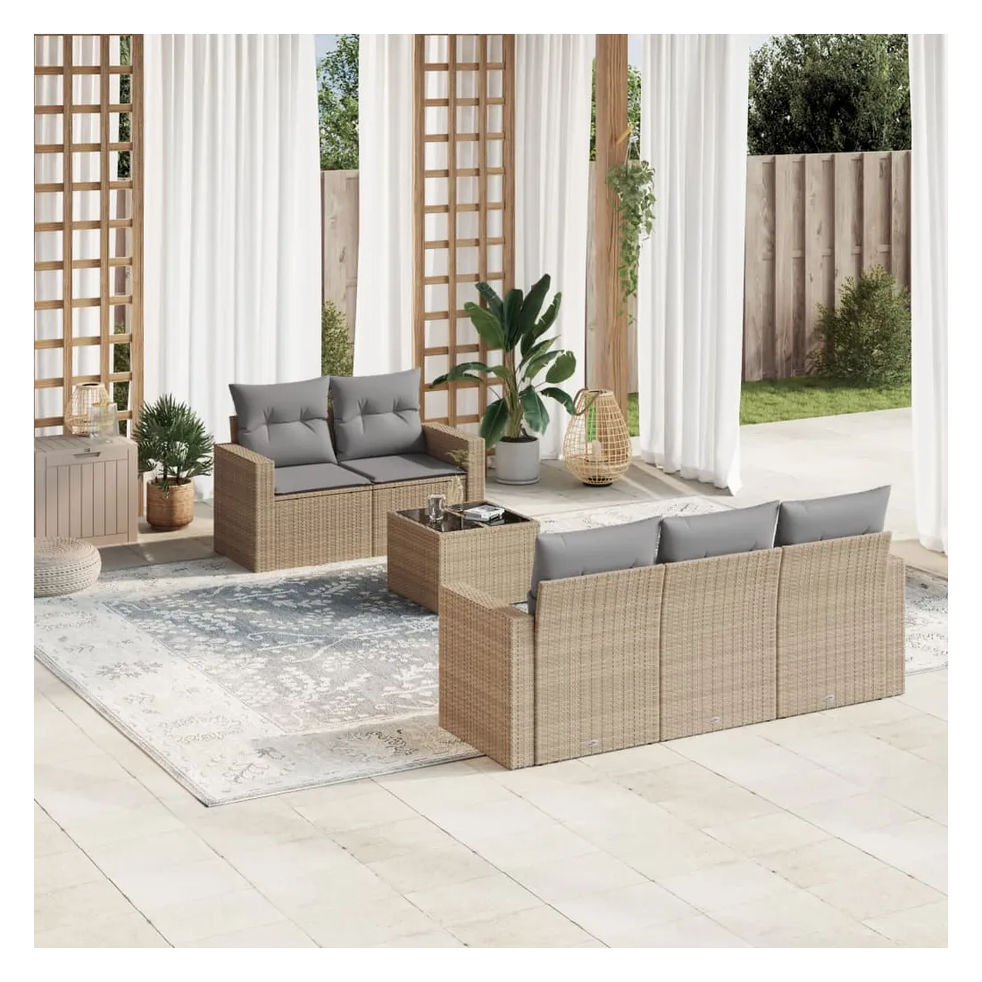 Cet ensemble de canapés de jardin est le complément parfait de votre arrière-cour, terrasse ou patio, offrant un espace confortable et accueillant pour discuter avec la famille et les amis ou simplement se détendre et profiter de l'extérieur. Matériau durable : la résine tressée, également connue sous le nom de poly rotin, est un matériau synthétique solide et nécessitant peu d'entretien qui ressemble au rotin naturel. Il est léger, facile à nettoyer et couramment utilisé pour les meubles d'extérieur en raison de sa durabilité et de ses propriétés de résistance aux intempéries.Fonction de rangement avec sac résistant à l'eau : chaque siège de jardin dispose d'un espace de rangement sous l'assise, complété par un sac résistant à l'eau pour ranger les coussins, les jouets et d'autres objets. Les sacs intérieurs sont dotés d'un couvercle et peuvent être solidement fixés aux sièges à l'aide de bandes auto-agrippantes pour plus de stabilité.Dessus en verre : le dessus de la table d'extérieur est fabriqué en verre trempé solide et durable, ce qui le rend facile à nettoyer avec un chiffon humide et ajoute une touche d'élégance à votre espace extérieur.Housse amovible et lavable : ces coussins de siège sont dotés de housses amovibles pour un lavage et un entretien faciles.Conception modulaire : cet ensemble de meubles d'extérieur a une conception modulaire, ce qui le rend complètement flexible et facile à déplacer, afin que vous puissiez créer un agencement de meubles d'extérieur personnalisé. Bon à savoir :Pour que vos meubles d'extérieur restent beaux, nous vous recommandons de les protéger avec une housse imperméable.
