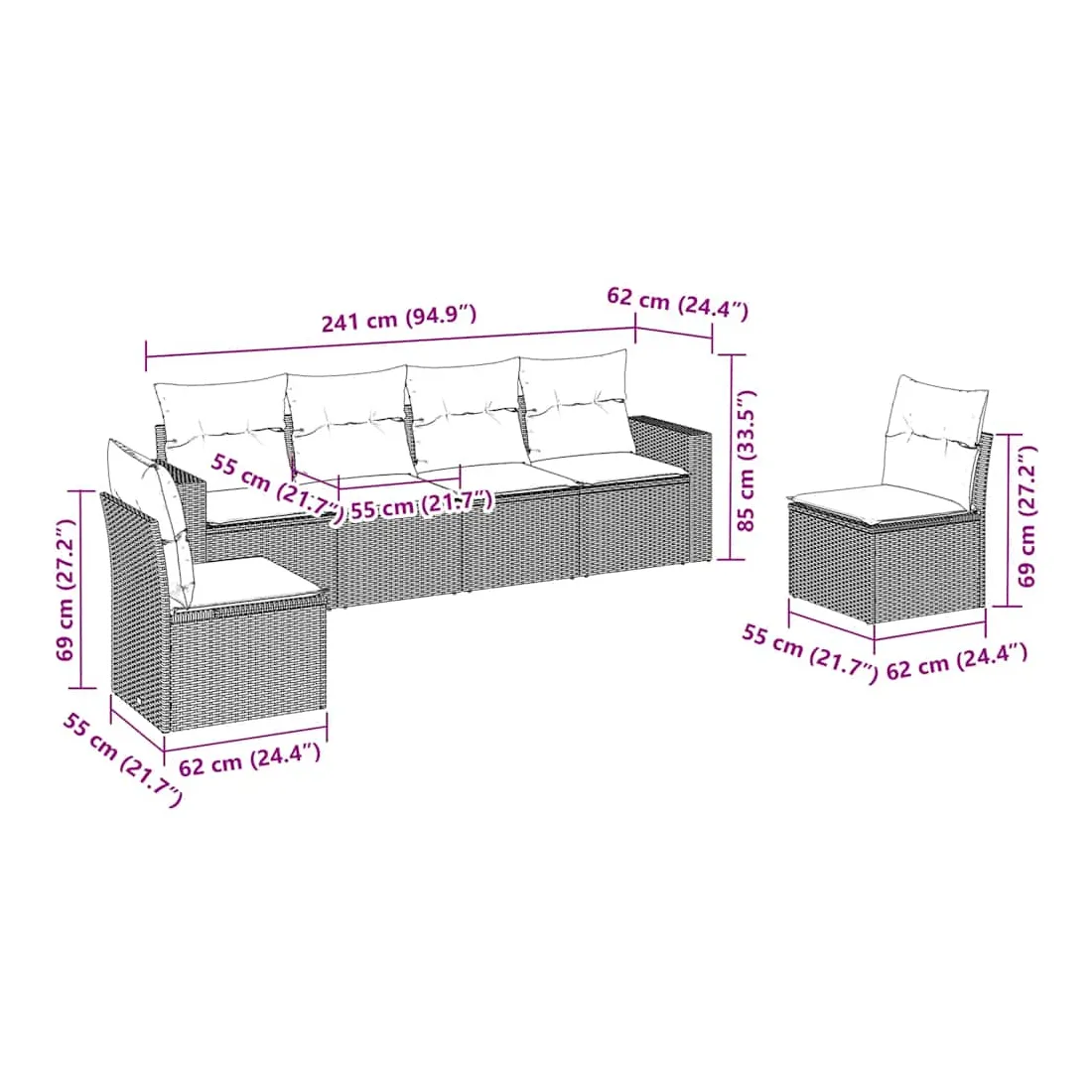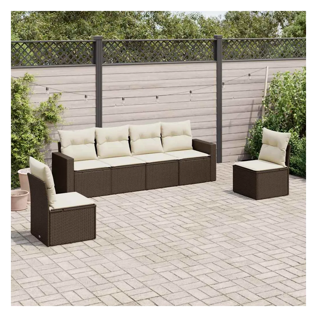 Cet ensemble de canapés de jardin est le complément parfait de votre arrière-cour, terrasse ou patio, offrant un espace confortable et accueillant pour discuter avec la famille et les amis ou simplement se détendre et profiter de l'extérieur. Matériau durable : la résine tressée, également connue sous le nom de poly rotin, est un matériau synthétique solide et nécessitant peu d'entretien qui ressemble au rotin naturel. Il est léger, facile à nettoyer et couramment utilisé pour les meubles d'extérieur en raison de sa durabilité et de ses propriétés de résistance aux intempéries.Fonction de rangement avec sac résistant à l'eau : chaque siège de jardin dispose d'un espace de rangement sous l'assise, complété par un sac résistant à l'eau pour ranger les coussins, les jouets et d'autres objets. Les sacs intérieurs sont dotés d'un couvercle et peuvent être solidement fixés aux sièges à l'aide de bandes auto-agrippantes pour plus de stabilité.Expérience d'assise confortable : ce mobilier d'extérieur, doté de coussins épais, offre une expérience d'assise confortable.Housse amovible et lavable : ces coussins de siège sont dotés de housses amovibles pour un lavage et un entretien faciles.Conception modulaire : cet ensemble de meubles d'extérieur a une conception modulaire, ce qui le rend complètement flexible et facile à déplacer, afin que vous puissiez créer un agencement de meubles d'extérieur personnalisé. Bon à savoir :Pour que vos meubles d'extérieur restent beaux, nous vous recommandons de les protéger avec une housse imperméable.
