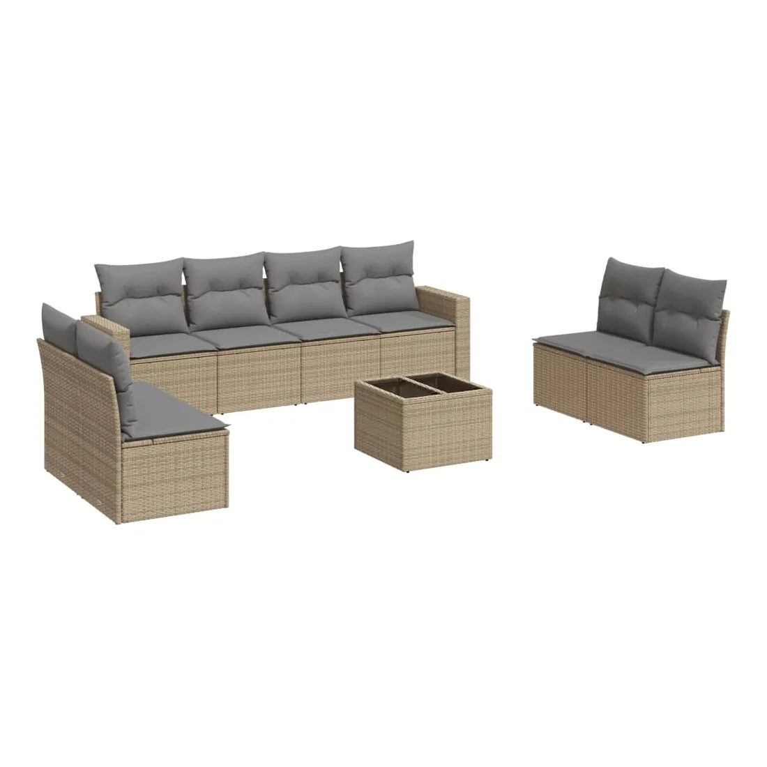 Cet ensemble de canapés de jardin est le complément parfait de votre arrière-cour, terrasse ou patio, offrant un espace confortable et accueillant pour discuter avec la famille et les amis ou simplement se détendre et profiter de l'extérieur. Matériau durable : la résine tressée, également connue sous le nom de poly rotin, est un matériau synthétique solide et nécessitant peu d'entretien qui ressemble au rotin naturel. Il est léger, facile à nettoyer et couramment utilisé pour les meubles d'extérieur en raison de sa durabilité et de ses propriétés de résistance aux intempéries.Fonction de rangement avec sac résistant à l'eau : chaque siège de jardin dispose d'un espace de rangement sous l'assise, complété par un sac résistant à l'eau pour ranger les coussins, les jouets et d'autres objets. Les sacs intérieurs sont dotés d'un couvercle et peuvent être solidement fixés aux sièges à l'aide de bandes auto-agrippantes pour plus de stabilité.Dessus en verre : le dessus de la table d'extérieur est fabriqué en verre trempé solide et durable, ce qui le rend facile à nettoyer avec un chiffon humide et ajoute une touche d'élégance à votre espace extérieur.Housse amovible et lavable : ces coussins de siège sont dotés de housses amovibles pour un lavage et un entretien faciles.Conception modulaire : cet ensemble de meubles d'extérieur a une conception modulaire, ce qui le rend complètement flexible et facile à déplacer, afin que vous puissiez créer un agencement de meubles d'extérieur personnalisé. Bon à savoir :Pour que vos meubles d'extérieur restent beaux, nous vous recommandons de les protéger avec une housse imperméable.