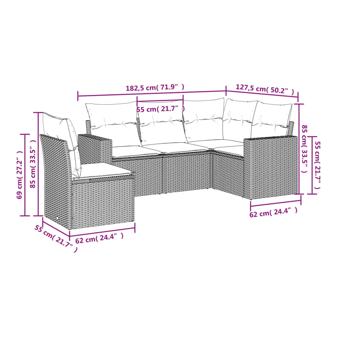 Salon de jardin avec coussins 5 pcs beige résine tressée