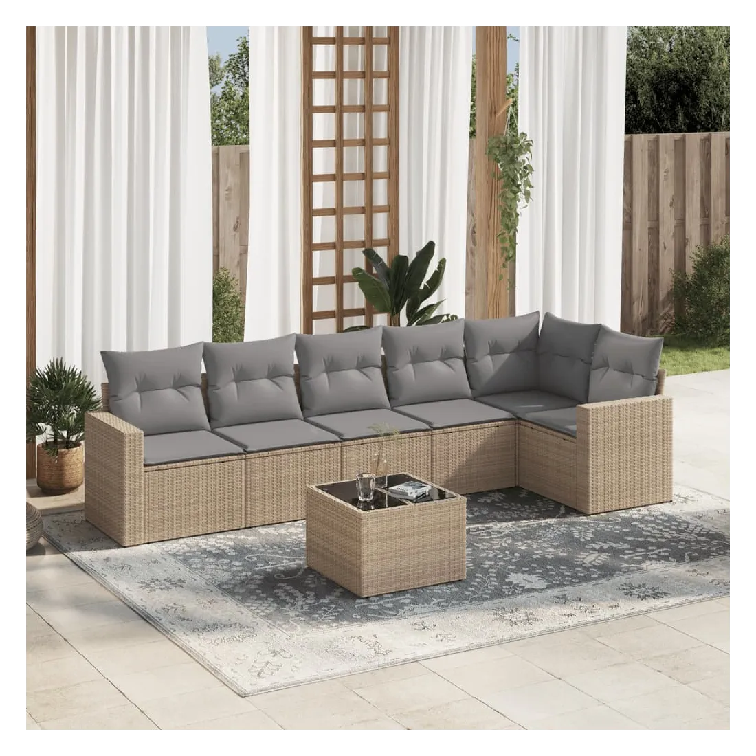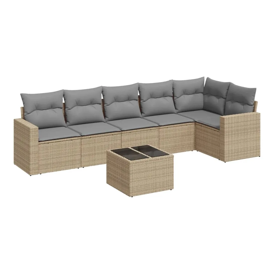 Salon de jardin avec coussins 7 pcs beige résine tressée