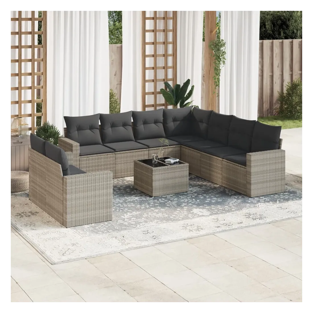 Cet ensemble de canapés de jardin est le complément parfait de votre arrière-cour, terrasse ou patio, offrant un espace confortable et accueillant pour discuter avec la famille et les amis ou simplement se détendre et profiter de l'extérieur. Matériau durable : la résine tressée, également connue sous le nom de poly rotin, est un matériau synthétique solide et nécessitant peu d'entretien qui ressemble au rotin naturel. Il est léger, facile à nettoyer et couramment utilisé pour les meubles d'extérieur en raison de sa durabilité et de ses propriétés de résistance aux intempéries.Fonction de rangement avec sac résistant à l'eau : chaque siège de jardin dispose d'un espace de rangement sous l'assise, complété par un sac résistant à l'eau pour ranger les coussins, les jouets et d'autres objets. Les sacs intérieurs sont dotés d'un couvercle et peuvent être solidement fixés aux sièges à l'aide de bandes auto-agrippantes pour plus de stabilité.Dessus en verre : le dessus de la table d'extérieur est fabriqué en verre trempé solide et durable, ce qui le rend facile à nettoyer avec un chiffon humide et ajoute une touche d'élégance à votre espace extérieur.Housse amovible et lavable : ces coussins de siège sont dotés de housses amovibles pour un lavage et un entretien faciles.Conception modulaire : cet ensemble de meubles d'extérieur a une conception modulaire, ce qui le rend complètement flexible et facile à déplacer, afin que vous puissiez créer un agencement de meubles d'extérieur personnalisé. Bon à savoir :Pour que vos meubles d'extérieur restent beaux, nous vous recommandons de les protéger avec une housse imperméable.