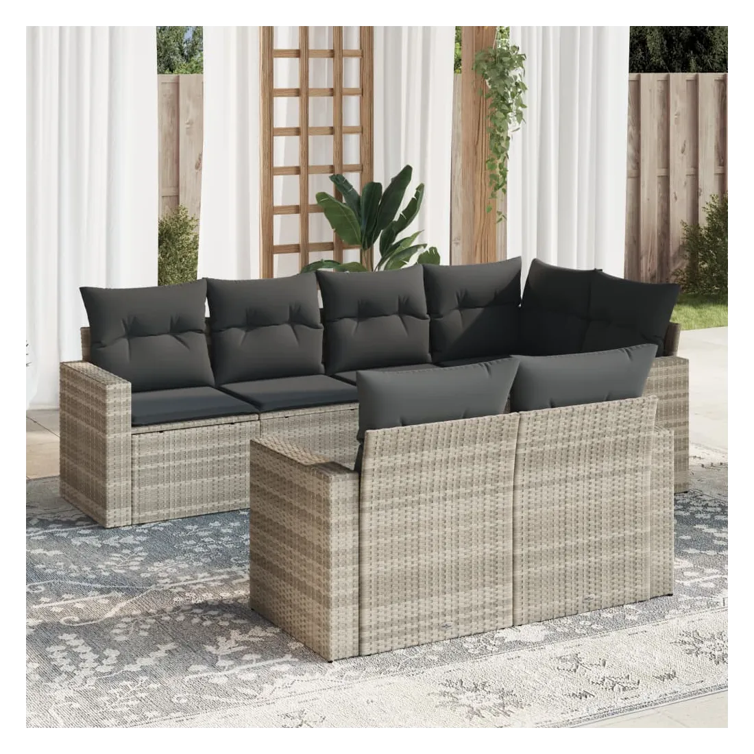 Cet ensemble de canapés de jardin est le complément parfait de votre arrière-cour, terrasse ou patio, offrant un espace confortable et accueillant pour discuter avec la famille et les amis ou simplement se détendre et profiter de l'extérieur. Matériau durable : la résine tressée, également connue sous le nom de poly rotin, est un matériau synthétique solide et nécessitant peu d'entretien qui ressemble au rotin naturel. Il est léger, facile à nettoyer et couramment utilisé pour les meubles d'extérieur en raison de sa durabilité et de ses propriétés de résistance aux intempéries.Fonction de rangement avec sac résistant à l'eau : chaque siège de jardin dispose d'un espace de rangement sous l'assise, complété par un sac résistant à l'eau pour ranger les coussins, les jouets et d'autres objets. Les sacs intérieurs sont dotés d'un couvercle et peuvent être solidement fixés aux sièges à l'aide de bandes auto-agrippantes pour plus de stabilité.Expérience d'assise confortable : ce mobilier d'extérieur, doté de coussins épais, offre une expérience d'assise confortable.Housse amovible et lavable : ces coussins de siège sont dotés de housses amovibles pour un lavage et un entretien faciles.Conception modulaire : cet ensemble de meubles d'extérieur a une conception modulaire, ce qui le rend complètement flexible et facile à déplacer, afin que vous puissiez créer un agencement de meubles d'extérieur personnalisé. Bon à savoir :Pour que vos meubles d'extérieur restent beaux, nous vous recommandons de les protéger avec une housse imperméable.