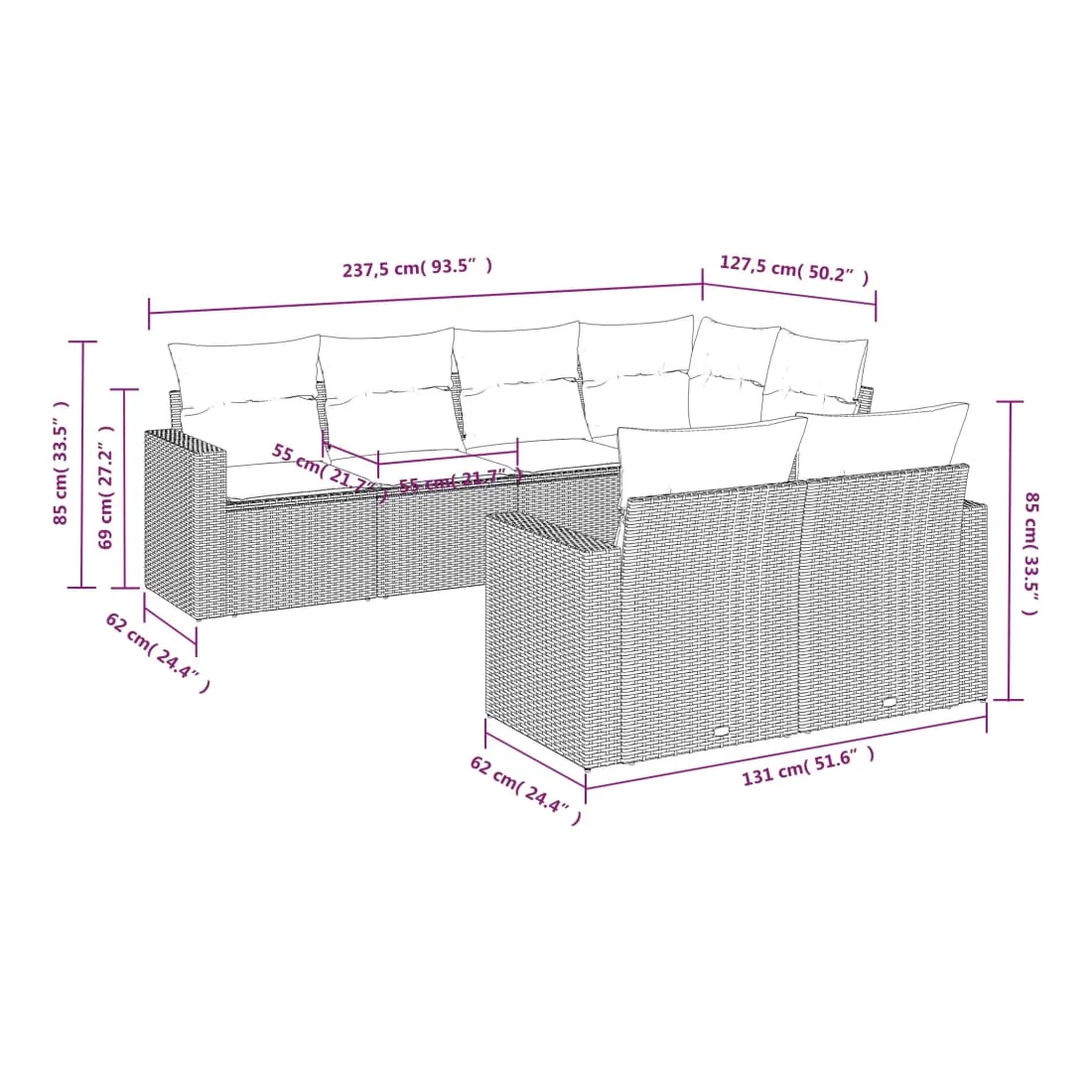 - Dimensions du coussin de dossier : 55 x 45 x 13 cm (L x l x é)