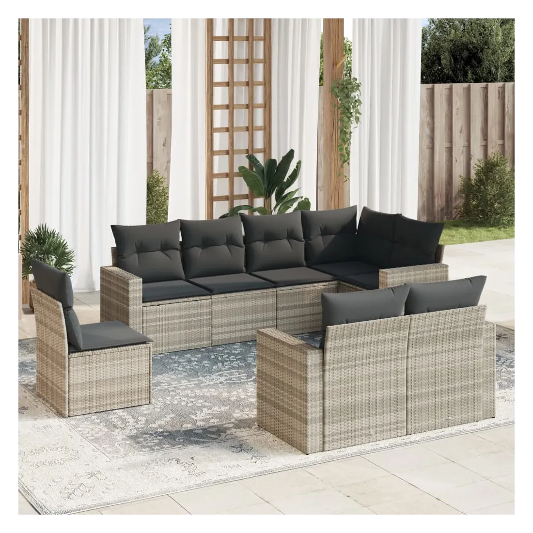 Salon de jardin 8 pcs avec coussins gris clair résine tressée