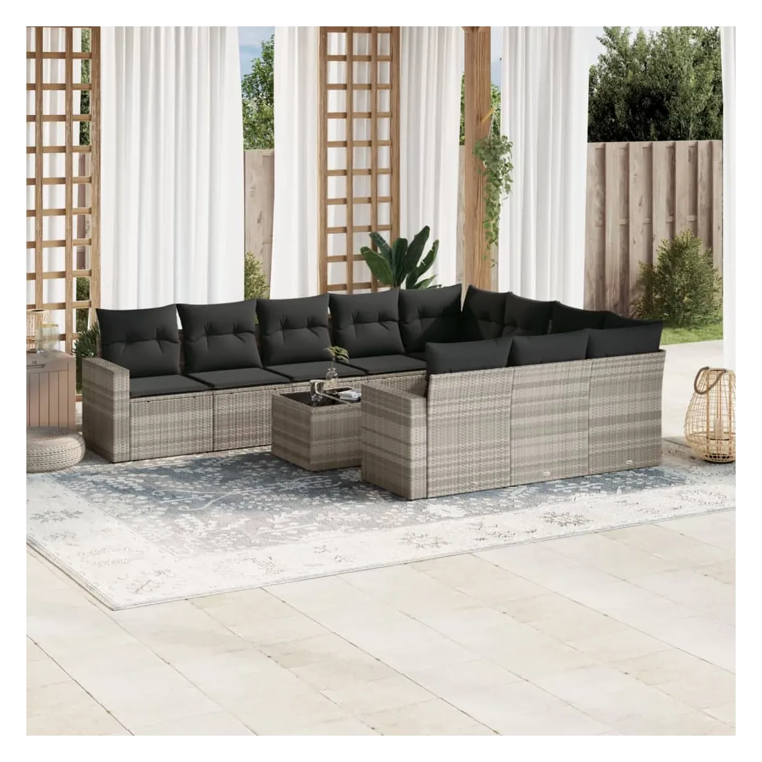 Cet ensemble de canapés de jardin est le complément parfait de votre arrière-cour, terrasse ou patio, offrant un espace confortable et accueillant pour discuter avec la famille et les amis ou simplement se détendre et profiter de l'extérieur. Matériau durable : la résine tressée, également connue sous le nom de poly rotin, est un matériau synthétique solide et nécessitant peu d'entretien qui ressemble au rotin naturel. Il est léger, facile à nettoyer et couramment utilisé pour les meubles d'extérieur en raison de sa durabilité et de ses propriétés de résistance aux intempéries.Fonction de rangement avec sac résistant à l'eau : chaque siège de jardin dispose d'un espace de rangement sous l'assise, complété par un sac résistant à l'eau pour ranger les coussins, les jouets et d'autres objets. Les sacs intérieurs sont dotés d'un couvercle et peuvent être solidement fixés aux sièges à l'aide de bandes auto-agrippantes pour plus de stabilité.Dessus en verre : le dessus de la table d'extérieur est fabriqué en verre trempé solide et durable, ce qui le rend facile à nettoyer avec un chiffon humide et ajoute une touche d'élégance à votre espace extérieur.Housse amovible et lavable : ces coussins de siège sont dotés de housses amovibles pour un lavage et un entretien faciles.Conception modulaire : cet ensemble de meubles d'extérieur a une conception modulaire, ce qui le rend complètement flexible et facile à déplacer, afin que vous puissiez créer un agencement de meubles d'extérieur personnalisé. Bon à savoir :Pour que vos meubles d'extérieur restent beaux, nous vous recommandons de les protéger avec une housse imperméable.