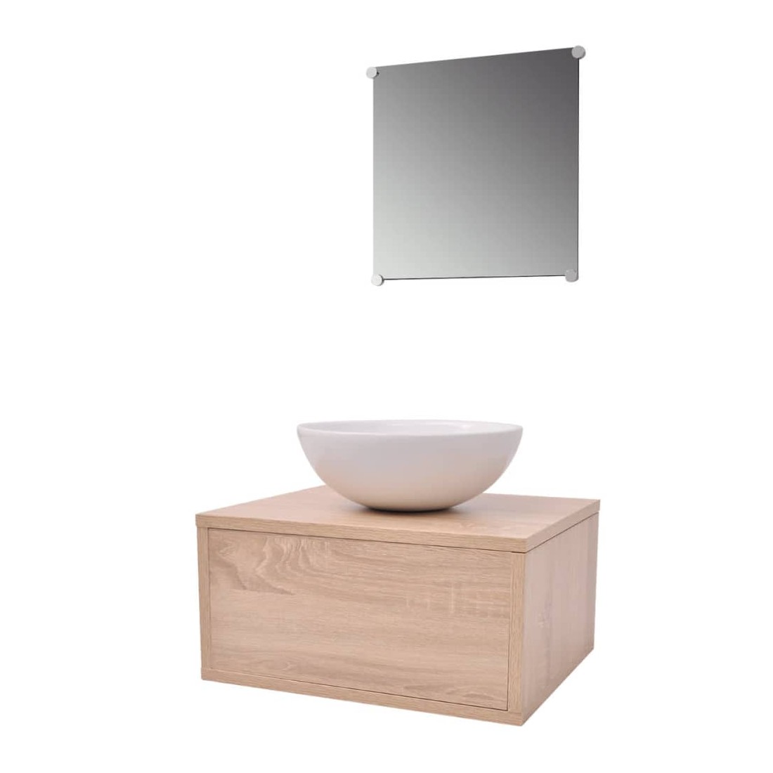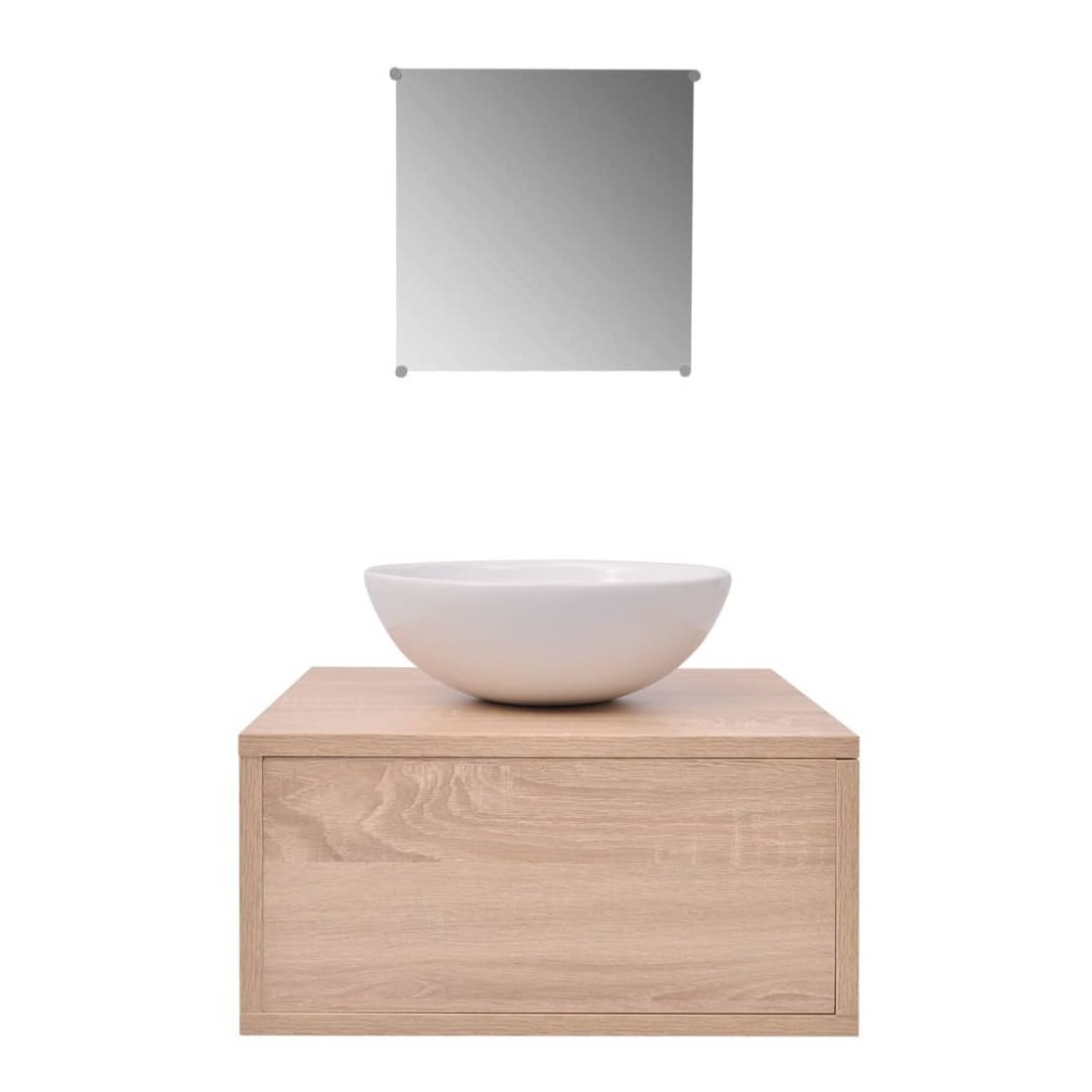 Cet ensemble complet, composé de 1 armoire de lavabo mural, 1 miroir et 1 lavabo, sera un excellent ajout à votre salle de bains, en améliorant votre espace sans compromettre le style. L'ensemble de meubles de salle de bains comprend un miroir et une armoire de lavabo. La taille compacte et le design minimaliste font de celui-ci un excellent ajout à toute salle de bains moderne. Fabriqué en panneaux de particules de haute qualité, ce meuble est très robuste et durable. Le lavabo est fabriqué en céramique de haute qualité, résistant aux rayures, à la corrosion et est facile à nettoyer. Il est adapté au montage au-dessus du comptoir. Le montage est vraiment facile. La livraison comprend également un bouchon de vidange et des accessoires de montage. Veuillez noter: le robinet n'est pas inclus dans la livraison; le trou pour le robinet n'est pas pré-percé.