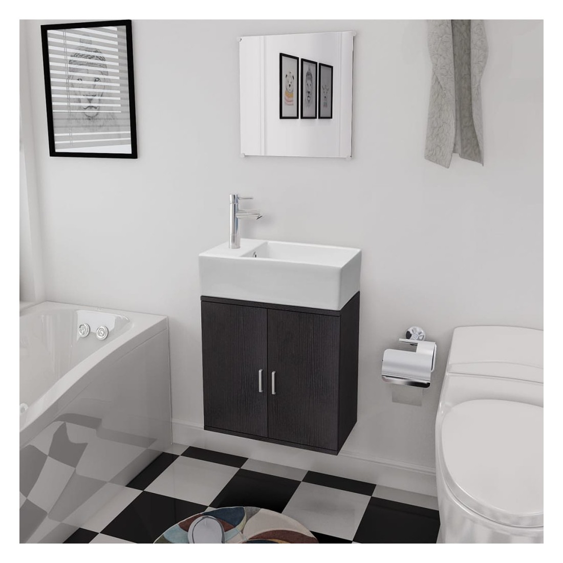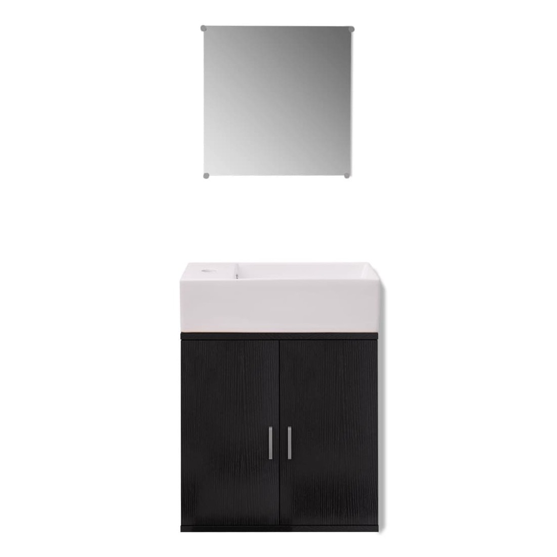 Cet ensemble complet, composé de 1 armoire de lavabo mural, 1 miroir et 1 lavabo, sera un excellent ajout à votre salle de bains, en améliorant votre espace sans compromettre le style. L'ensemble de meubles de salle de bains comprend un miroir et une armoire de lavabo. L'armoire de lavabo fournit amplement d'espace pour vos articles de toilette, des produits de beauté et d'autres petits articles. Fabriqué en panneaux de particules de haute qualité, ce meuble est très robuste et durable. Le lavabo est fabriqué en céramique de haute qualité, résistant aux rayures, à la corrosion et est facile à nettoyer. Il est adapté au montage au-dessus du comptoir. Les trous pour le robinet et le trop-plein ont déjà été pré-percés. Le montage est vraiment facile. La livraison comprend également un bouchon de vidange et des accessoires de montage. Veuillez noter: le robinet n'est pas inclus dans la livraison.