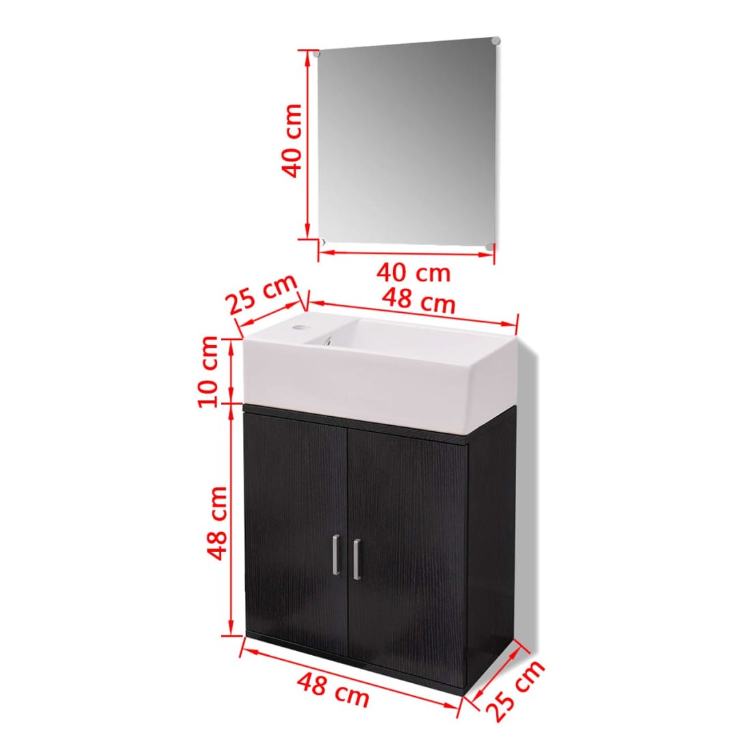 - Dimensions de l'armoire du lavabo : 48 x 25 x 48 cm (L x l x H)