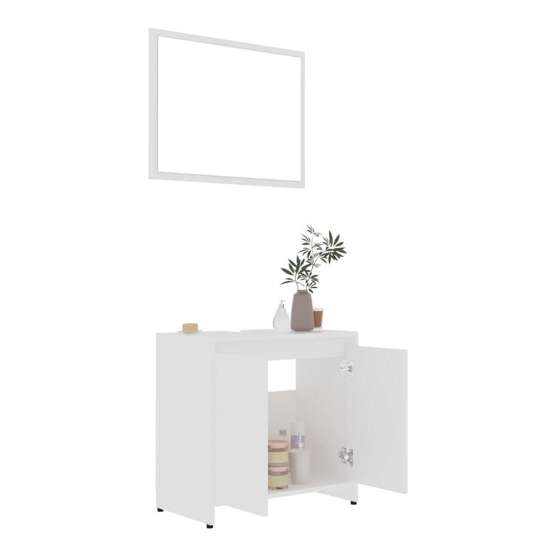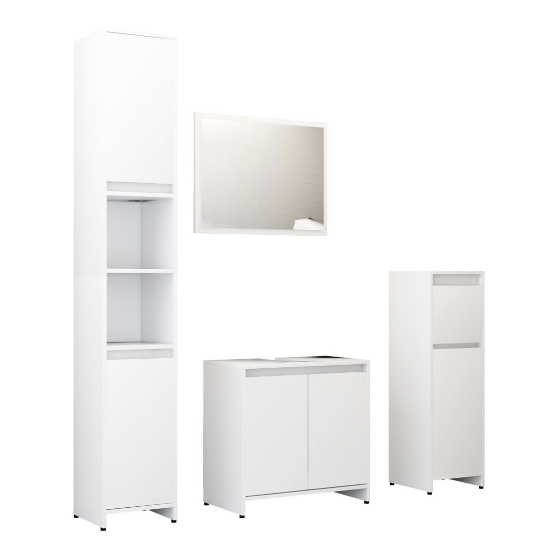 Cet élégant ensemble de meubles de salle de bain, avec 1 armoire haute, 1 armoire de taille moyenne, 1 armoire sous lavabo et 1 miroir, crée un espace de rangement supplémentaire pour votre salle de bain avec un aspect superbe et soigné. Fabriqué en bois d'ingénierie haut de gamme, cet ensemble est durable et stable. L’armoire haute chic a 6 compartiments et 2 portes tandis que l’armoire moyenne a 2 compartiments, 1 tiroir et 1 porte. Les deux offrent un espace spacieux pour ranger vos articles essentiels dans votre salle de bain. L’armoire de lavabo, avec 1 compartiment et 2 portes, offre amplement d’espace pour ranger vos articles de toilette, produits de beauté et petits articles. Vous pouvez même placer des peignes, des produits cosmétiques, des brosses à dents, du dentifrice, etc., soigneusement organisés et à portée de main. Le miroir ajoute une apparence unique à votre décoration intérieure existante. De plus, cet ensemble de salle de bain est facile à nettoyer avec un chiffon humide.