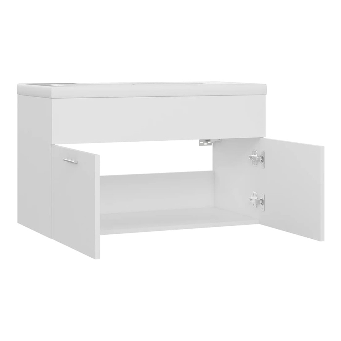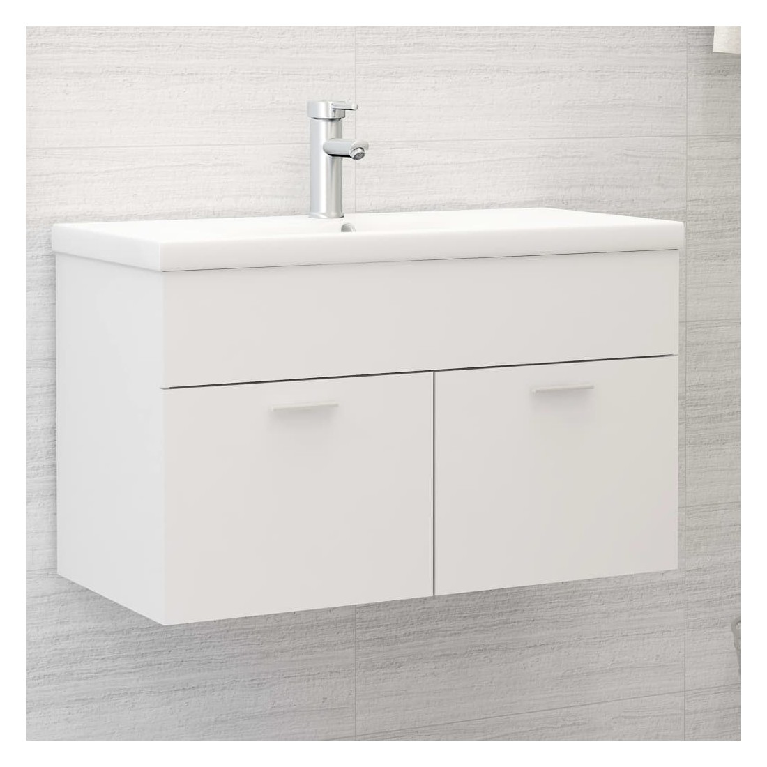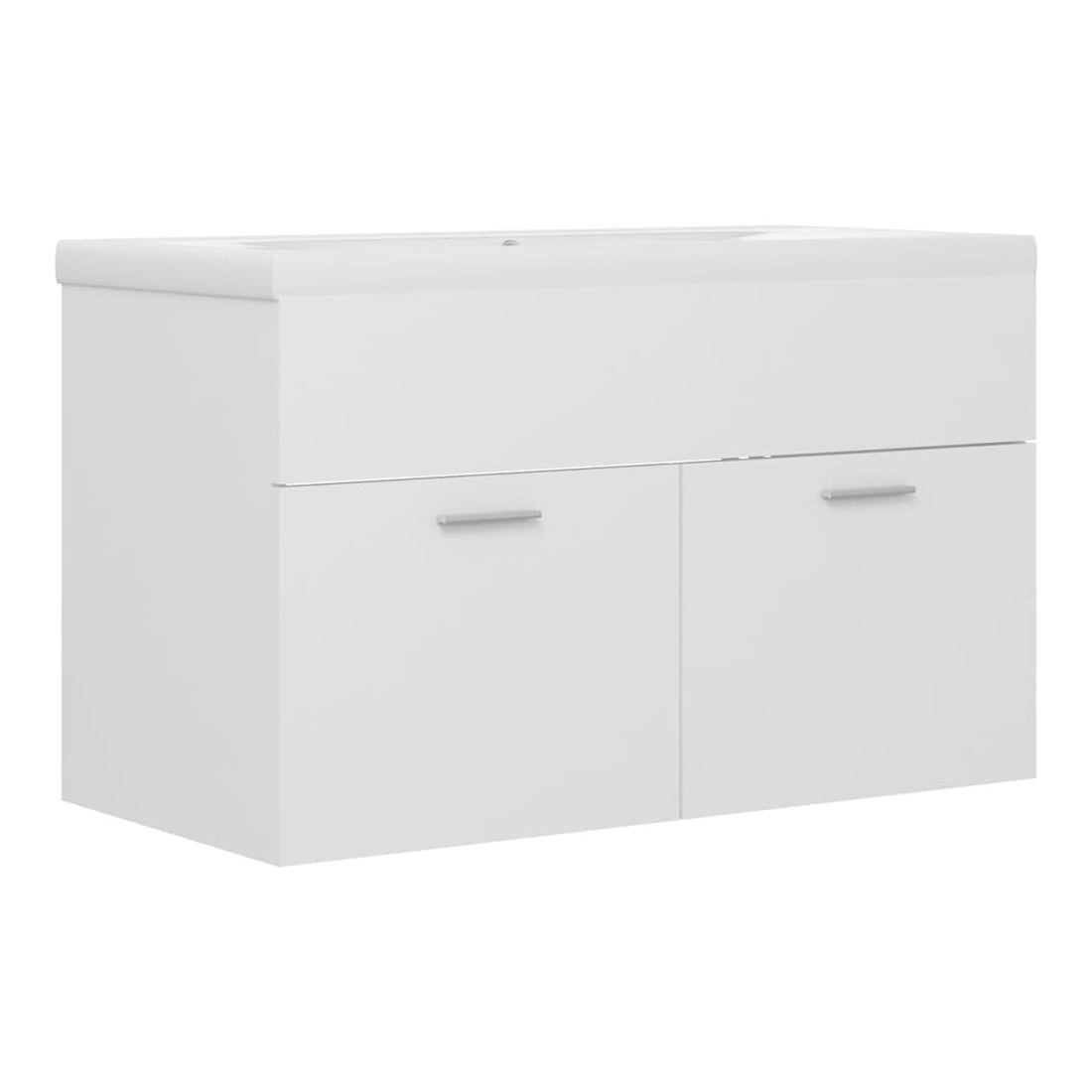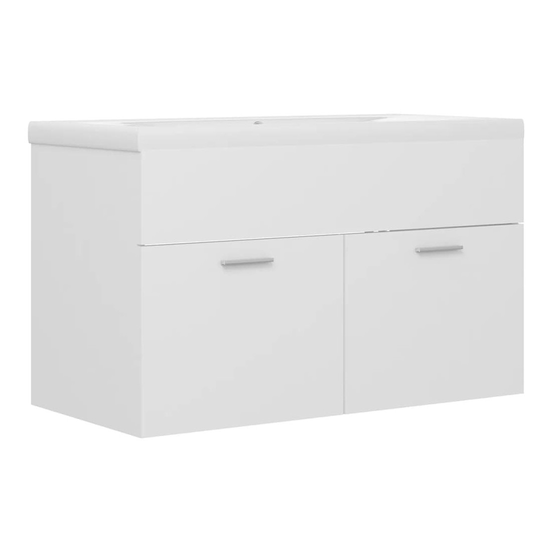 Cette armoire d'évier avec lavabo intégré s'agence parfaitement à votre salle de bain ou toilette avec un aspect saisissant et bien rangé. L'armoire est en aggloméré, ce qui la rend robuste et stable. L'armoire de rangement a 1 compartiment et 2 portes, offrant amplement d'espace pour ranger des objets. Elle s'intègre parfaitement sous l'évier et rend le rangement de la salle de bain très pratique. Fabriqué en céramique, le lavabo peut non seulement servir de récipient pour un usage quotidien, mais également d'ornement dans votre espace de vie. Grâce à son design avant-gardiste et contemporain, ce lavabo s'adaptera à n'importe quel décor. Un trop-plein est également équipé pour évacuer l'eau lorsqu'il est trop plein. Sa surface vitrée lui confère un design à la fois moderne et élégant. De plus, l'armoire et le lavabo sont faciles à nettoyer avec un chiffon humide. Veuillez noter que le robinet et le drain ne sont pas inclus dans la livraison.