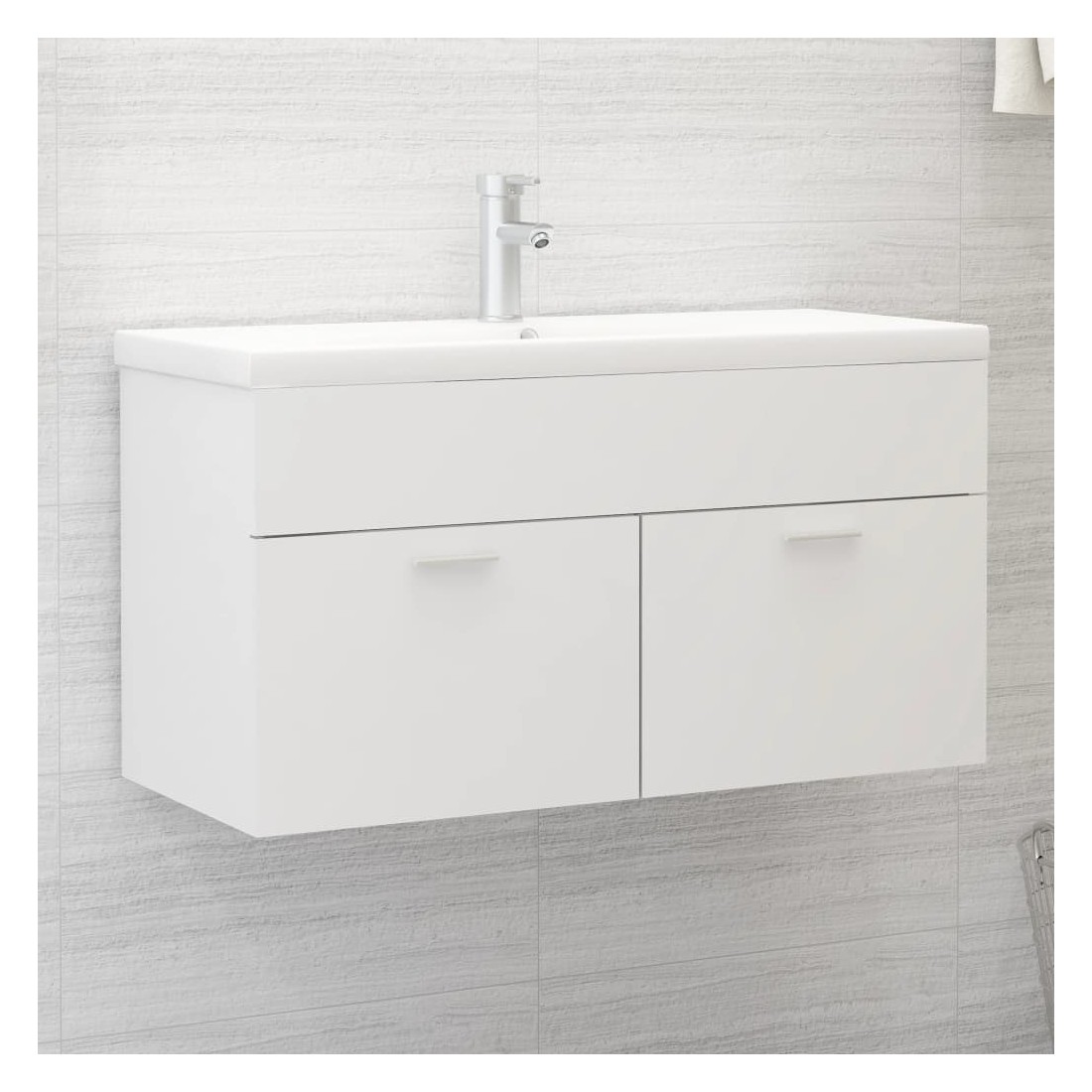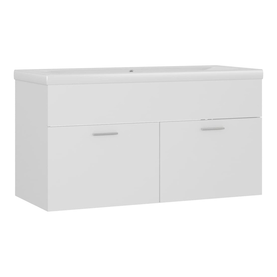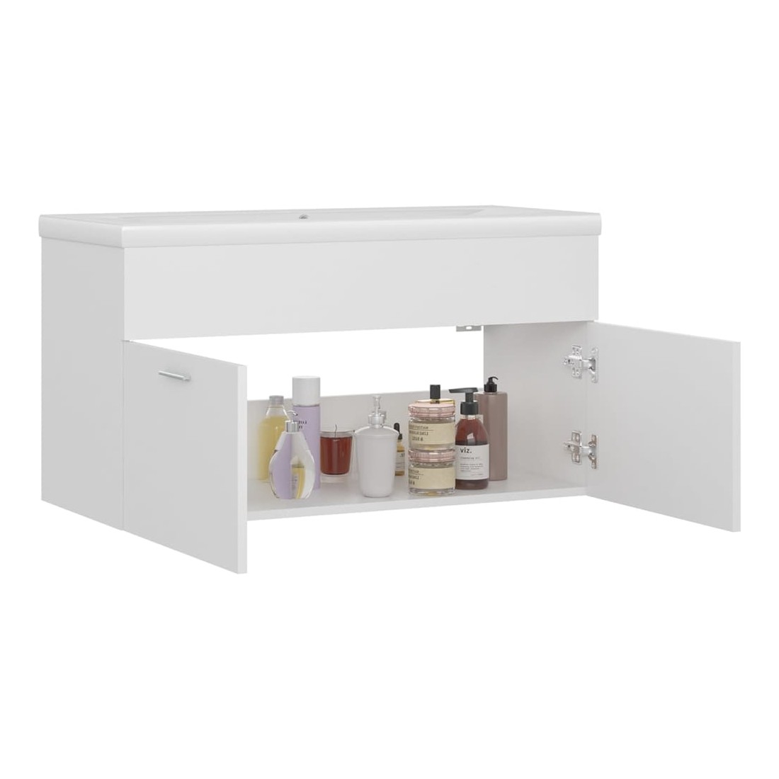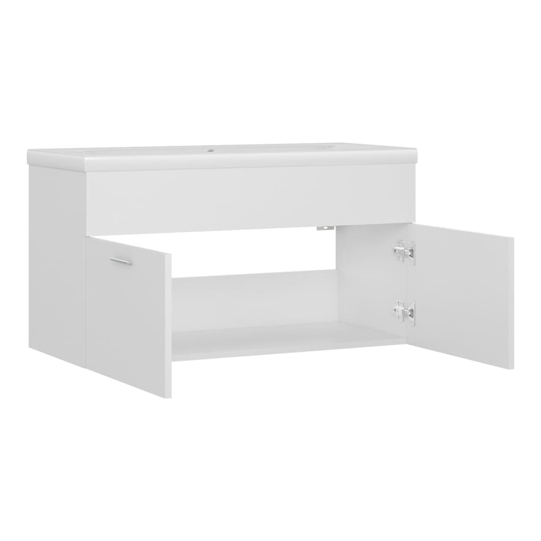 Cette armoire d'évier avec lavabo intégré s'agence parfaitement à votre salle de bain ou toilette avec un aspect saisissant et bien rangé. L'armoire est en bois d'ingénierie, ce qui la rend robuste et stable. L'armoire de rangement a 1 compartiment et 2 portes, offrant amplement d'espace pour ranger des objets. Elle s'intègre parfaitement sous l'évier et rend le rangement de la salle de bain très pratique. Fabriqué en céramique, le lavabo peut non seulement servir de récipient pour un usage quotidien, mais également d'ornement dans votre espace de vie. Grâce à son design avant-gardiste et contemporain, ce lavabo s'adaptera à n'importe quel décor. Un trop-plein est également équipé pour évacuer l'eau lorsqu'il est trop plein. Sa surface vitrée lui confère un design à la fois moderne et élégant. De plus, l'armoire et le lavabo sont faciles à nettoyer avec un chiffon humide. Remarque : le robinet et le vidange ne sont pas inclus dans la livraison.