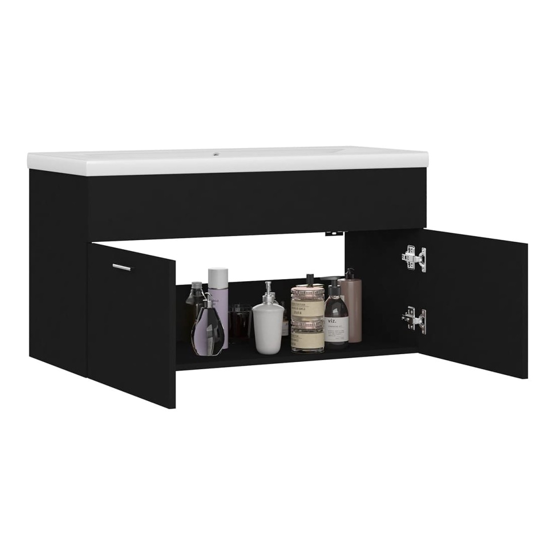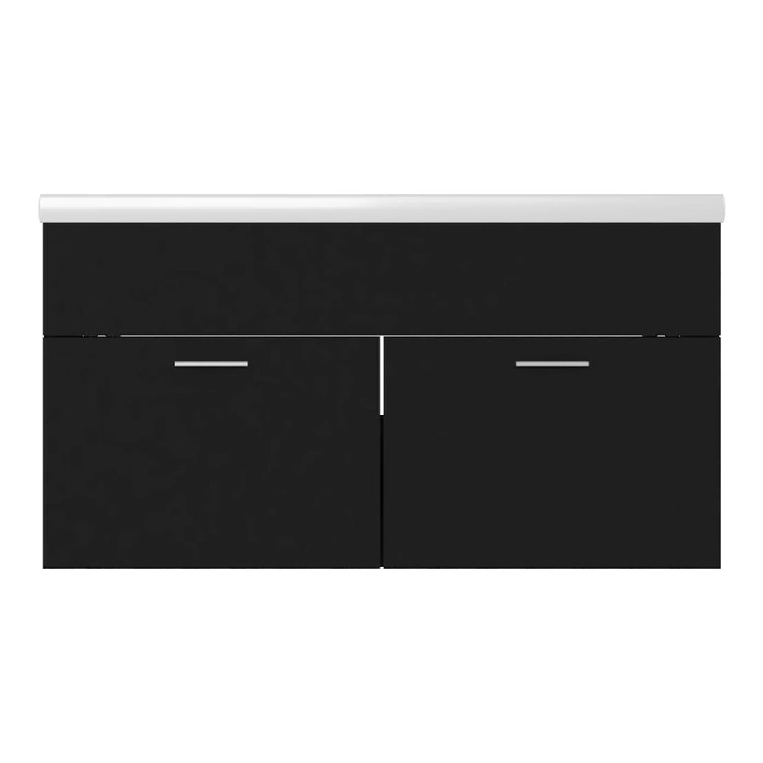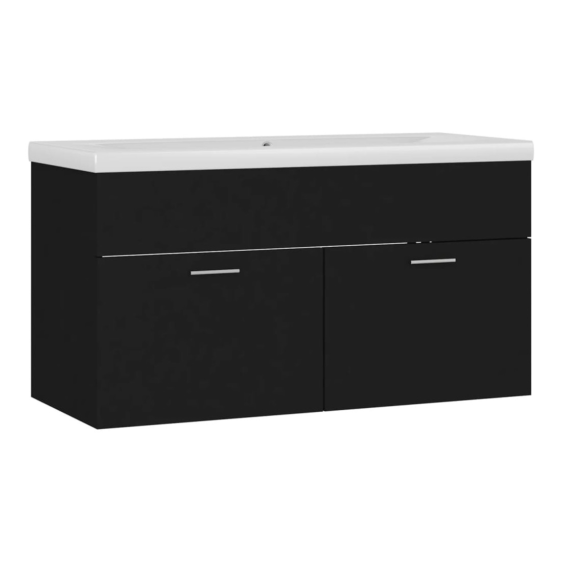 Cette armoire d'évier avec lavabo intégré s'agence parfaitement à votre salle de bain ou toilette avec un aspect saisissant et bien rangé. L'armoire est en bois d'ingénierie, ce qui la rend robuste et stable. L'armoire de rangement a 1 compartiment et 2 portes, offrant amplement d'espace pour ranger des objets. Elle s'intègre parfaitement sous l'évier et rend le rangement de la salle de bain très pratique. Fabriqué en céramique, le lavabo peut non seulement servir de récipient pour un usage quotidien, mais également d'ornement dans votre espace de vie. Grâce à son design avant-gardiste et contemporain, ce lavabo s'adaptera à n'importe quel décor. Un trop-plein est également équipé pour évacuer l'eau lorsqu'il est trop plein. Sa surface vitrée lui confère un design à la fois moderne et élégant. De plus, l'armoire et le lavabo sont faciles à nettoyer avec un chiffon humide. Remarque : le robinet et le vidange ne sont pas inclus dans la livraison.